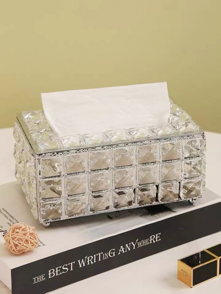工厂批发北欧式客厅轻奢水晶纸巾盒家用创意餐桌高档抽纸收纳盒 投诉