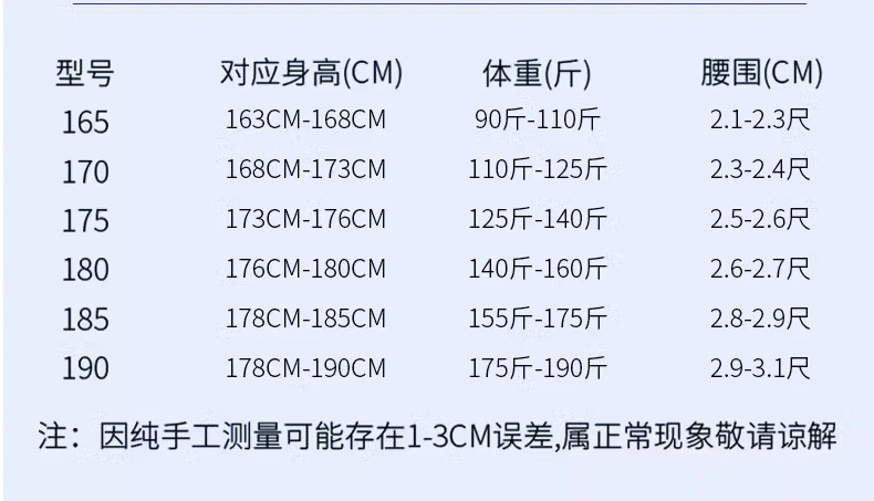 | 190(体重165-185斤) | ¥5800 | 997套可售 |