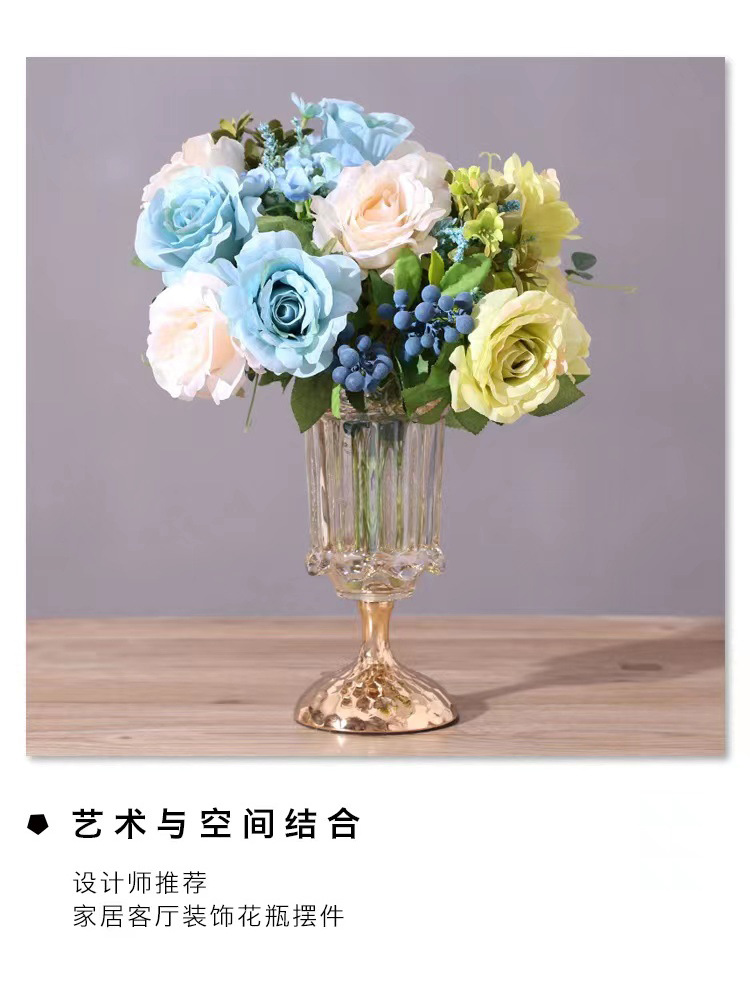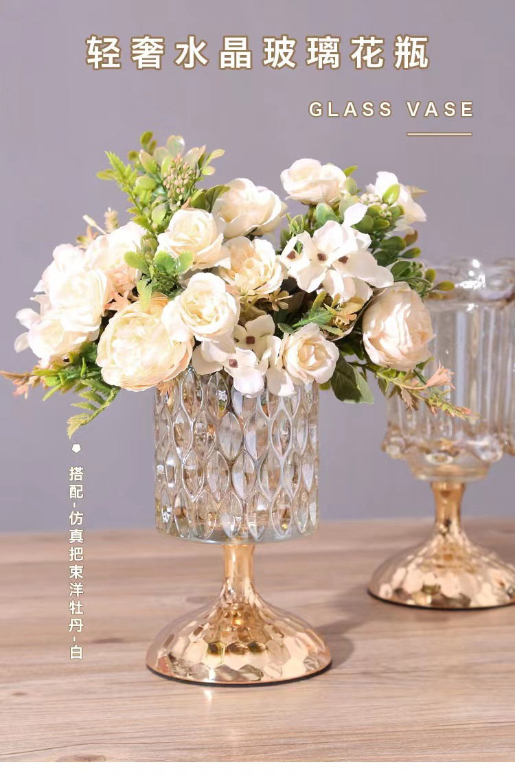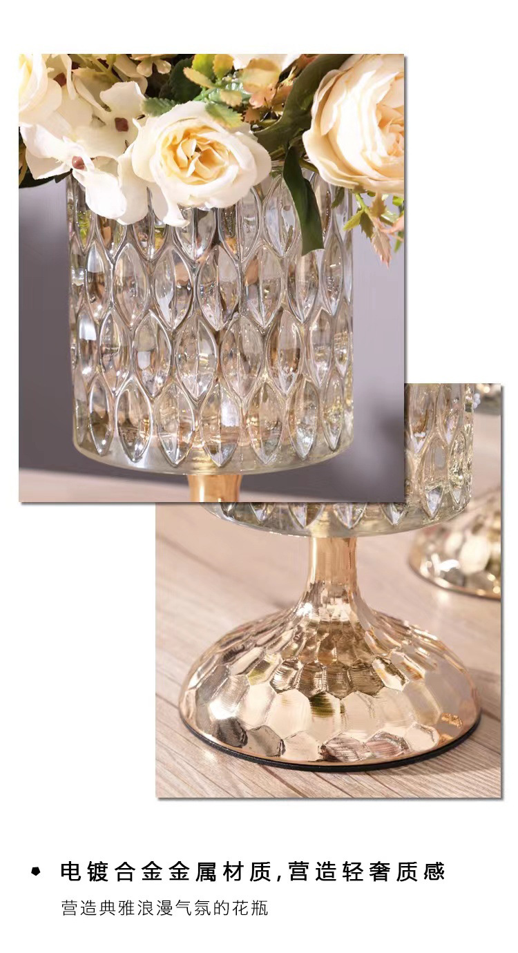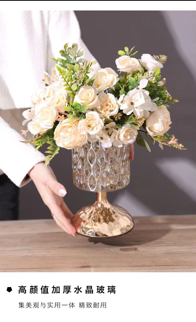 轻奢水晶玻璃装饰花瓶金属家用玻璃插花器糖果罐化妆高脚杯