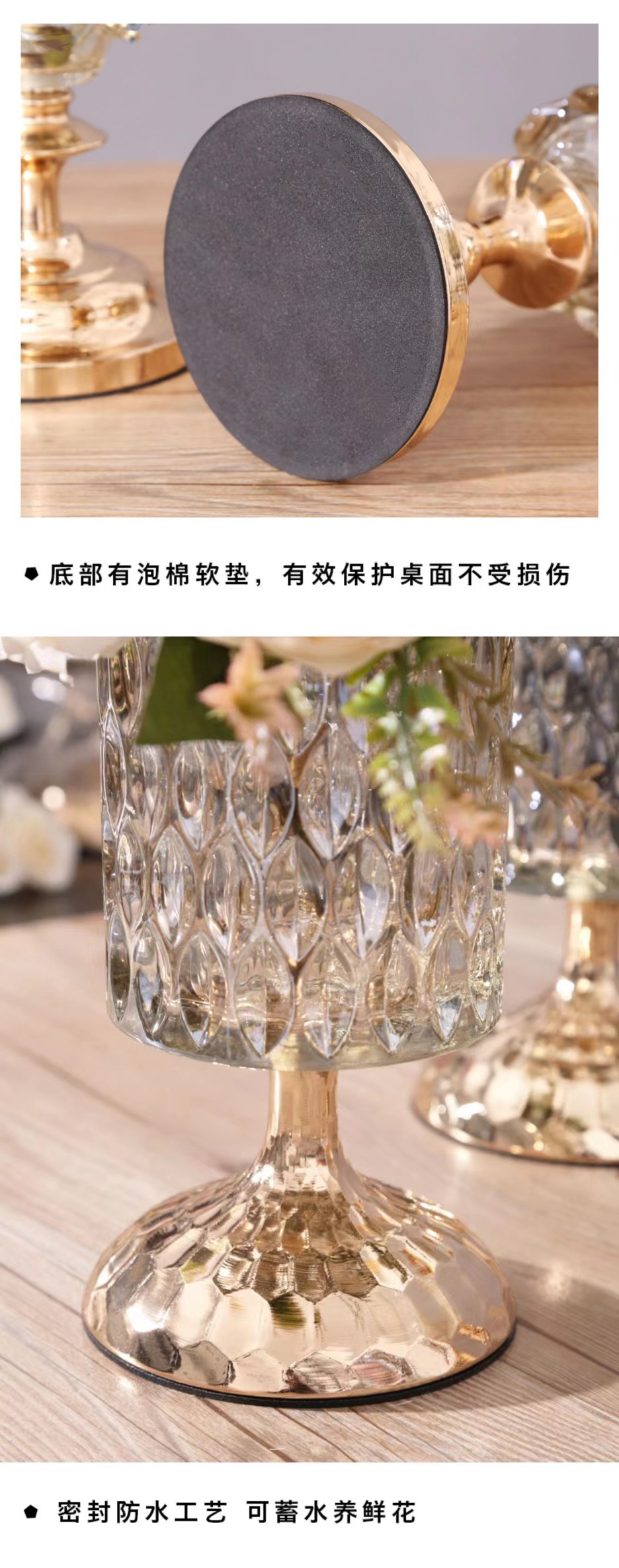 轻奢水晶玻璃装饰花瓶金属家用玻璃插花器糖果罐化妆高脚杯 投诉