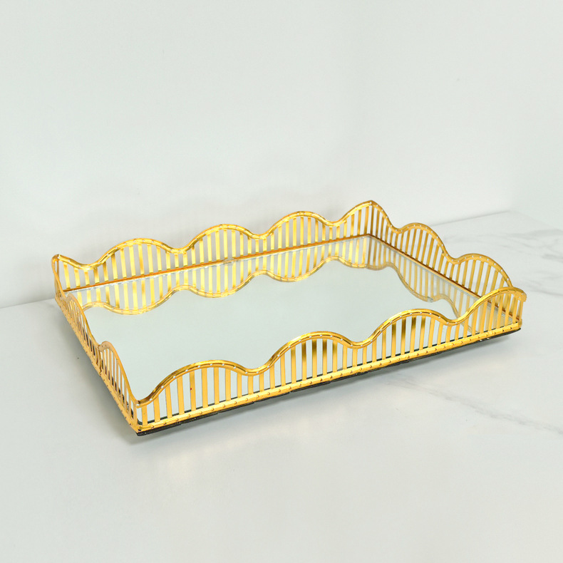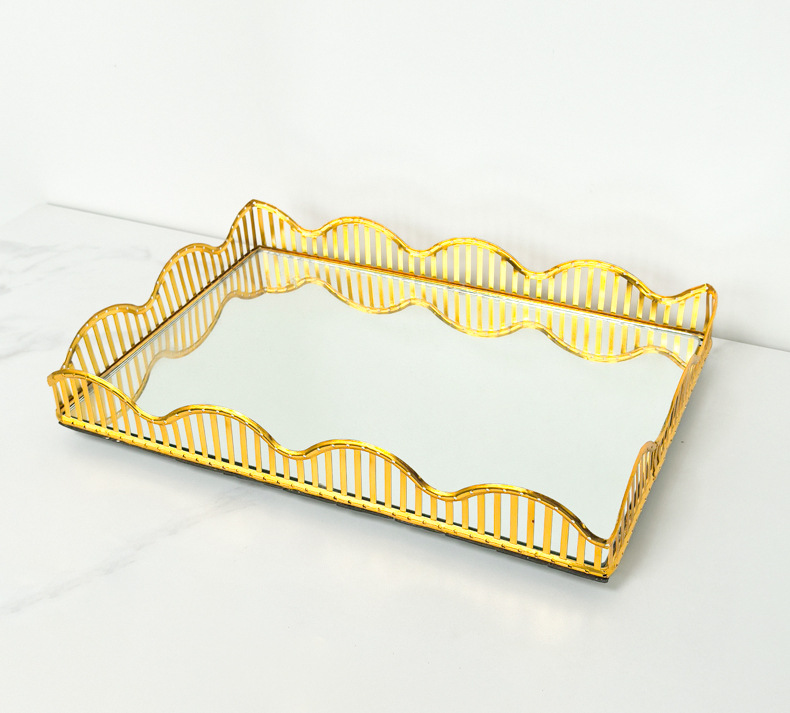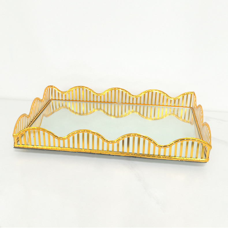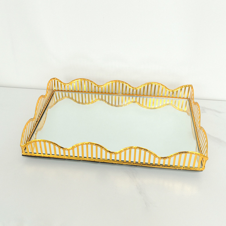厂家欧式镜面玻璃茶盘轻奢水果托盘家用茶几客厅收纳金属托盘装饰 投诉