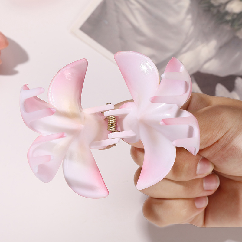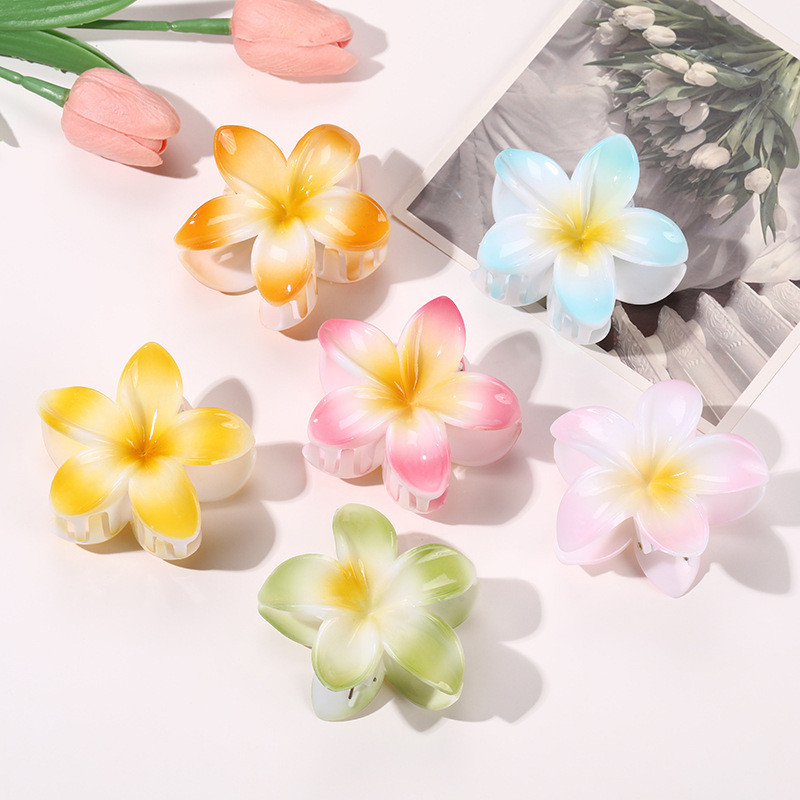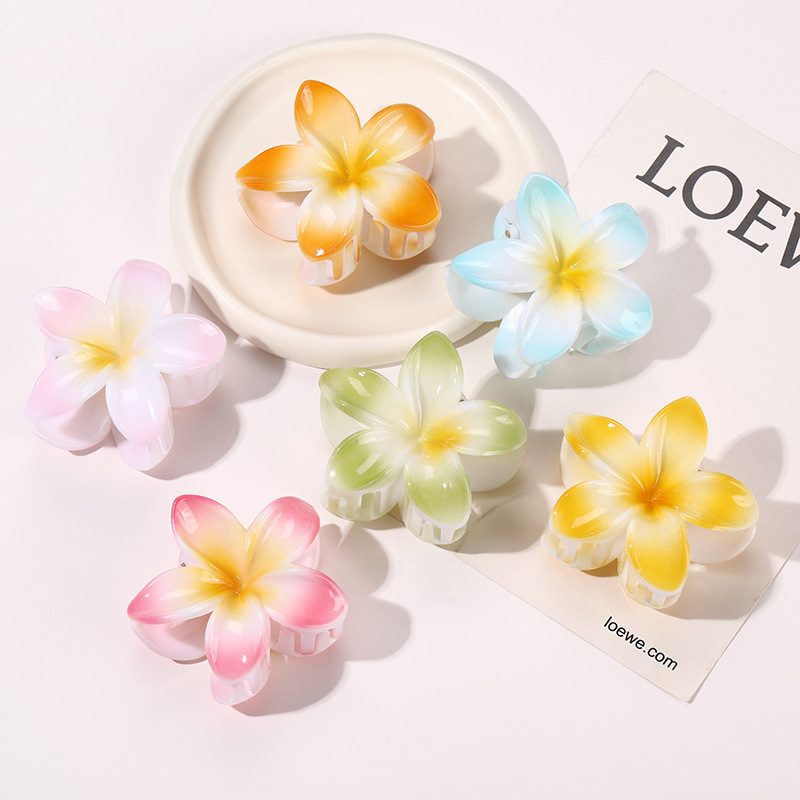 欧美跨境甜美风格渐变色鸡蛋花抓夹后脑勺盘发抓夹鲨鱼夹发饰批发