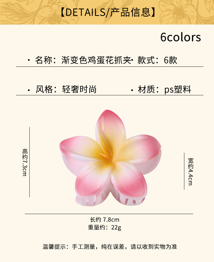 欧美跨境甜美风格渐变色鸡蛋花抓夹后脑勺盘发抓夹鲨鱼夹发饰批发 投诉