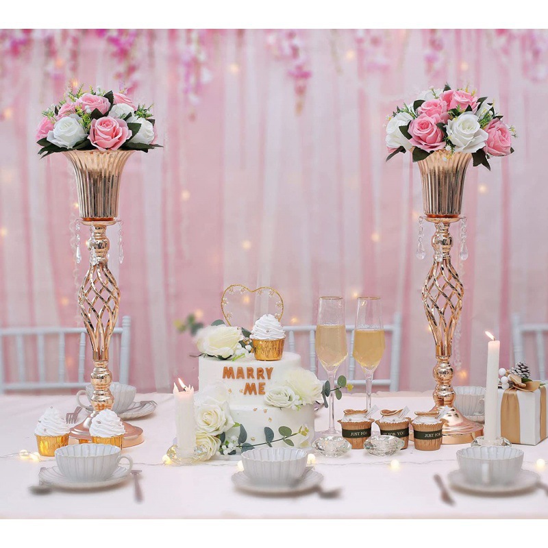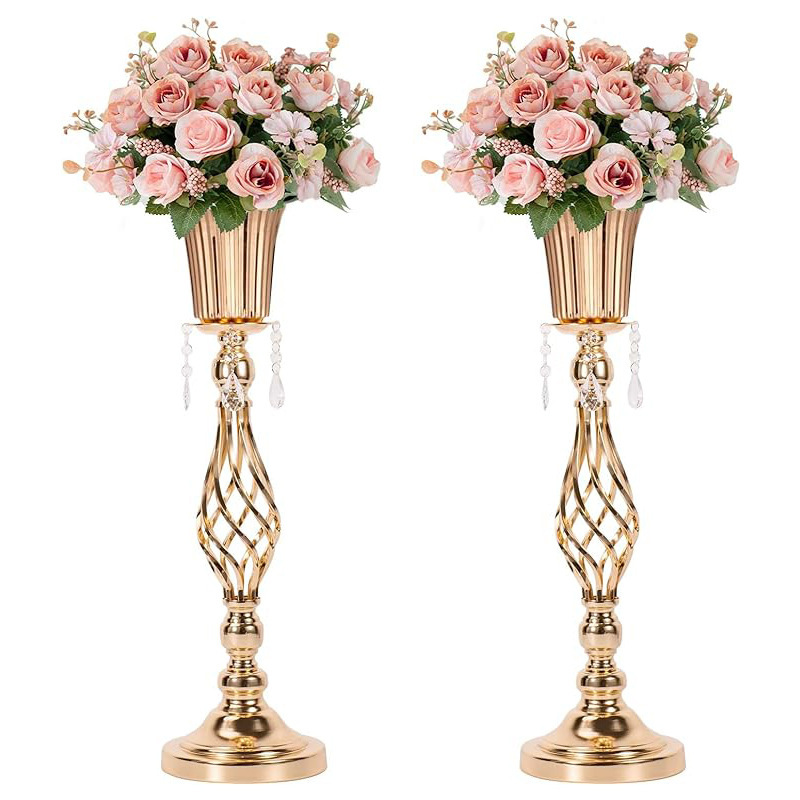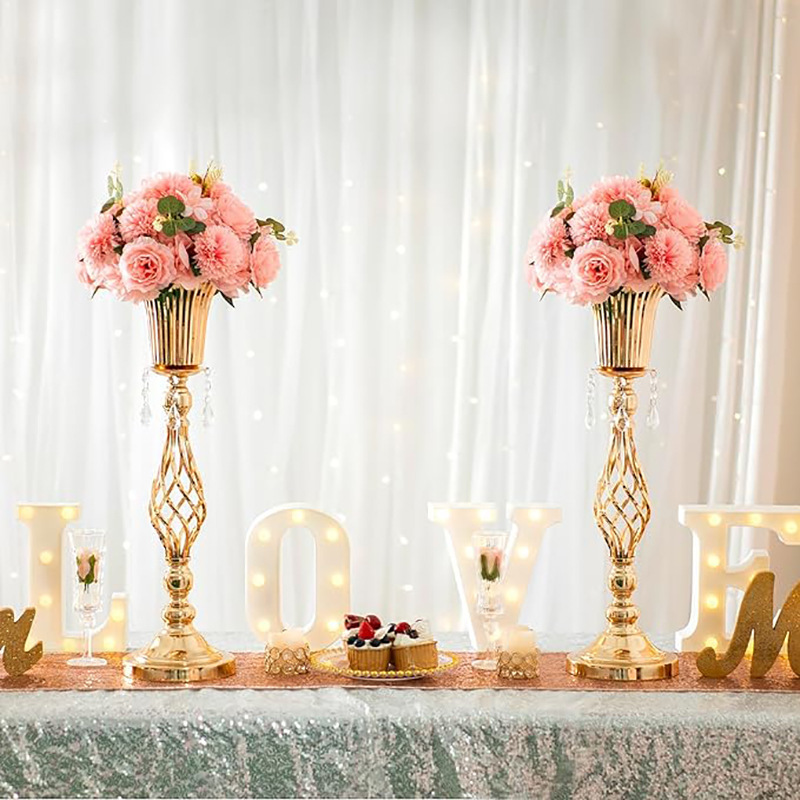 欧式场地布置道具电镀铁艺麻花插花路引烛台婚庆道具主桌金属摆件