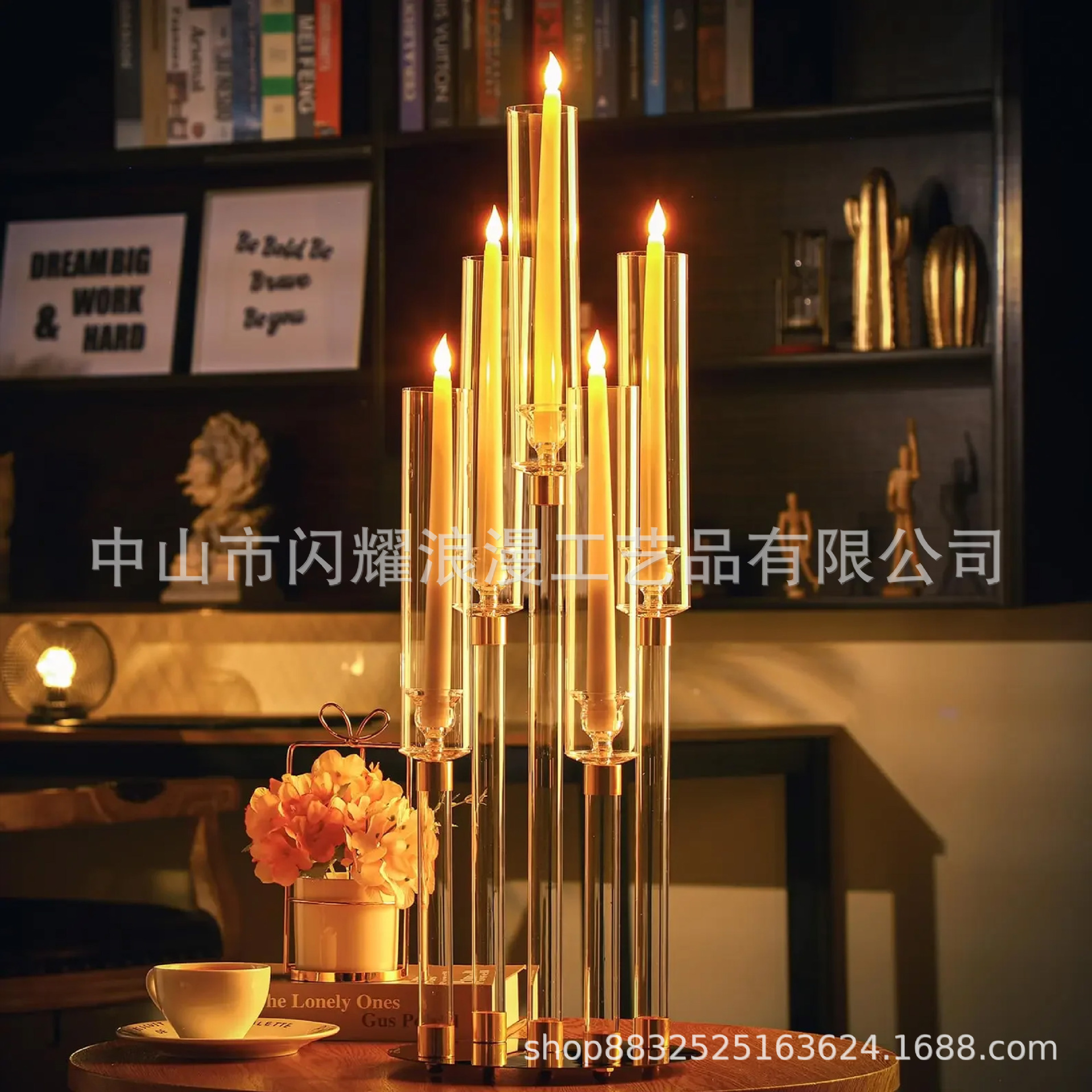 我们目前的顶部管是丙烯酸材料,适用于电蜡烛或 LED 灯,
