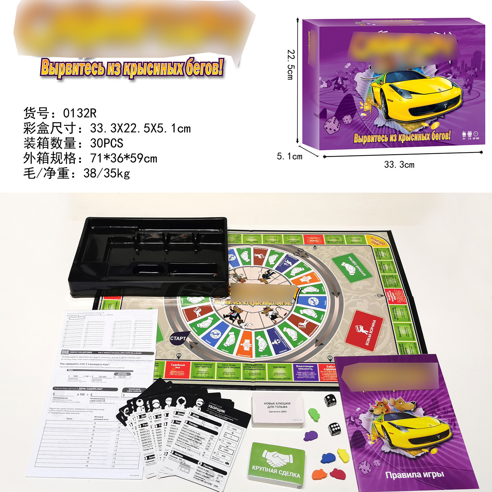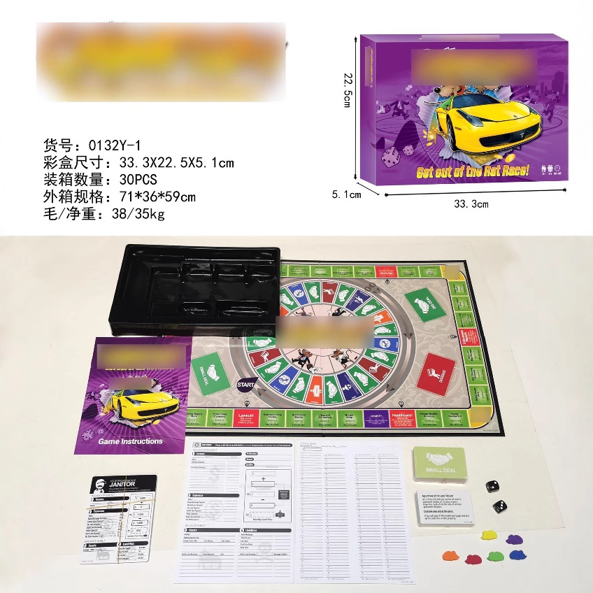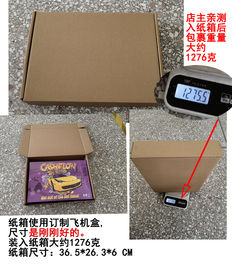 产品名称: 桌游俄文CASHFLOW现金流游戏厂家货号: 0132R包装方式: 彩盒外箱规格: 71*36*59 CM外箱体积: 0.150 cbm外箱材积: 5.298 cuft毛/净重: 38/35 KGS装箱量: 30内盒数: 2