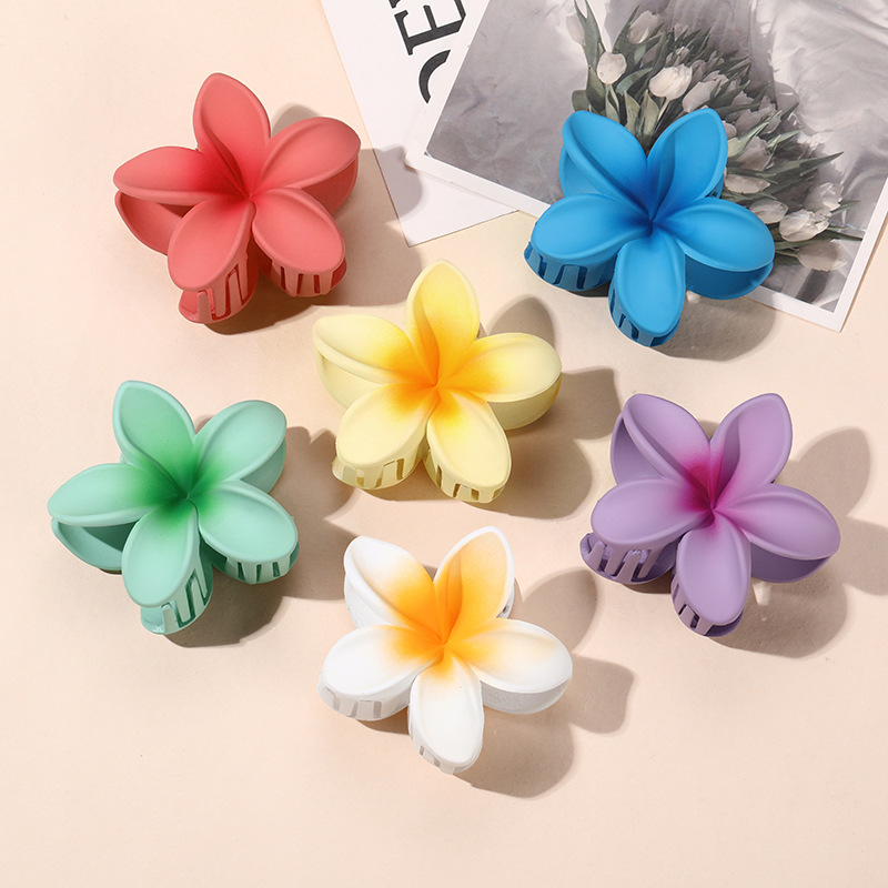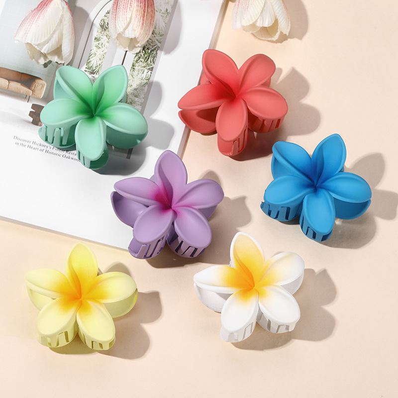材质: PS 发夹分类: 鲨鱼夹 流行元素: 花朵 风格: 度假风 处理工艺: 烤漆 镶嵌材质: 非镶嵌 货号: 磨砂款鸡蛋花 样式: 女 产地: 义乌 颜色: 绿色,紫色,西瓜红,黄色,白色,蓝色 有可授权的自有品牌: 否 是否跨境出口专供货源: 是 上市年份/季节: 2024年春季 是否有金属镀层: 无金属镀层 风格分类: 清新甜美 适用人群: 女式 流行元素分类: 植物花卉 重量: 0.05 kg/个