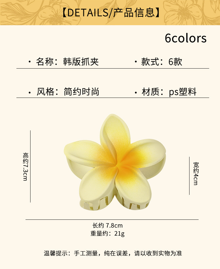 夏日度假鸡蛋花发夹 沙滩海边发卡后脑勺盘发抓夹鲨鱼夹发饰 投诉
