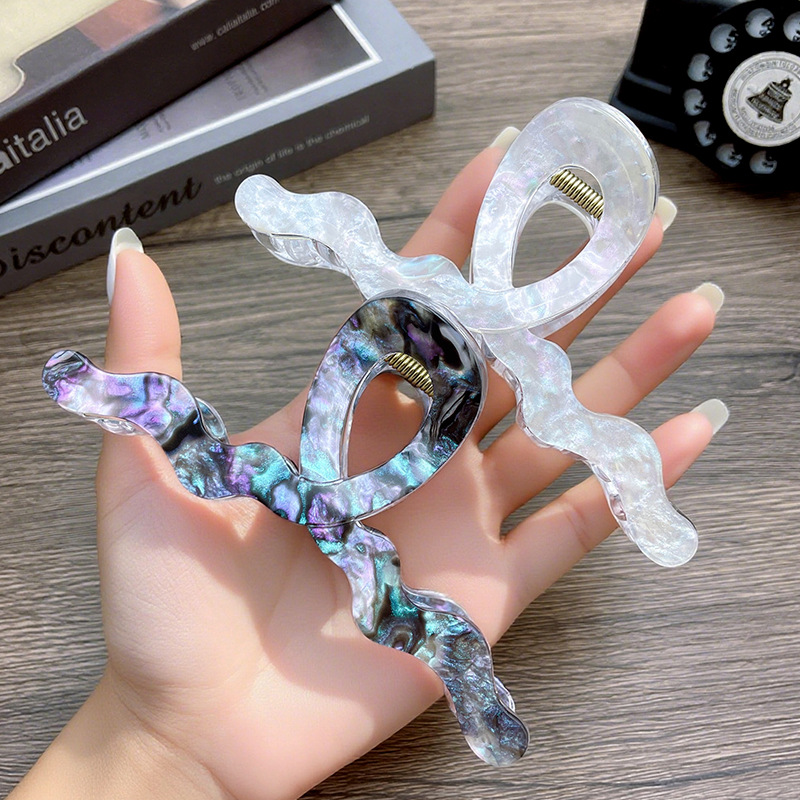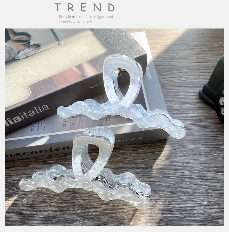 秋冬大号波浪抓夹大理石渐变气质简约鲨鱼夹适合发量多盘发夹发饰