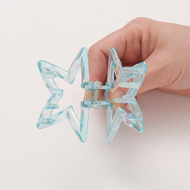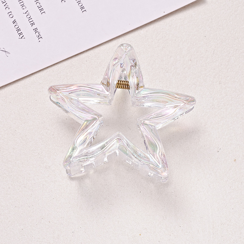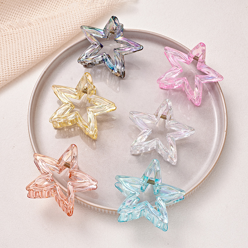 跨境爆款炫彩镂空星星发夹后脑勺发饰女高级感鲨鱼夹甜美发饰批发