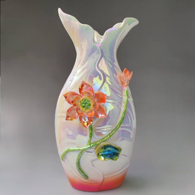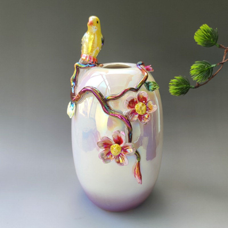 新中式电视柜珐琅彩摆件花瓶高级感典雅中式别墅玄关走廊家居工艺 投诉