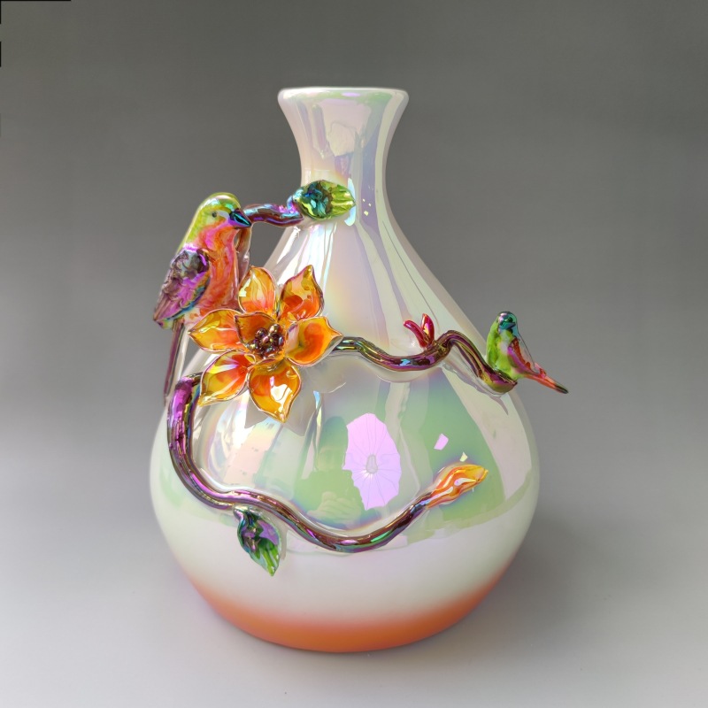 新中式电视柜珐琅彩摆件花瓶高级感典雅中式别墅玄关走廊家居工艺