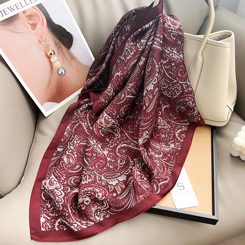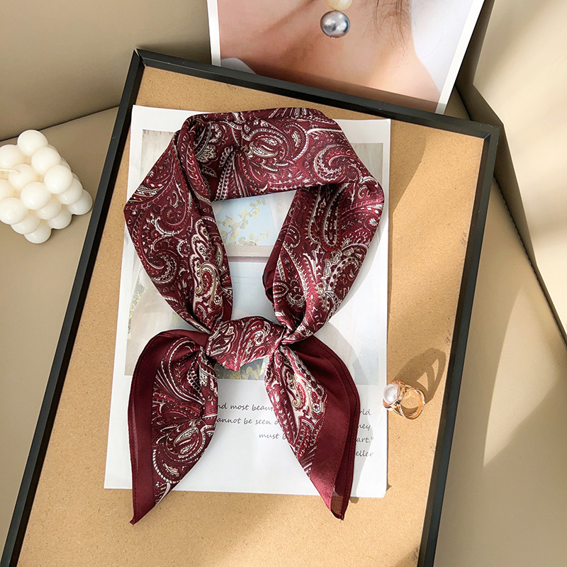 复古老钱风红色佩斯利腰果仿真丝丝巾方巾春夏新款系脖围巾女披肩 English | 投诉