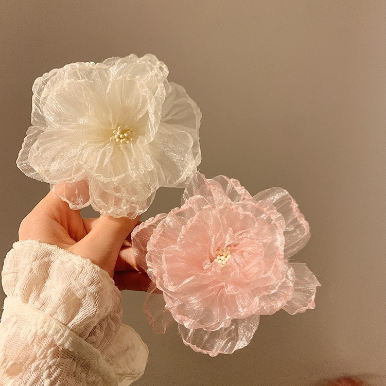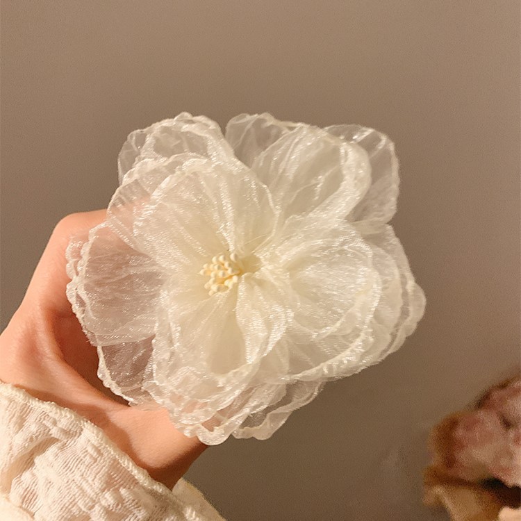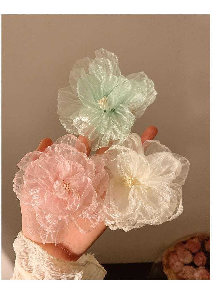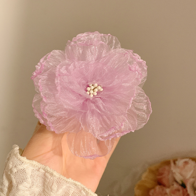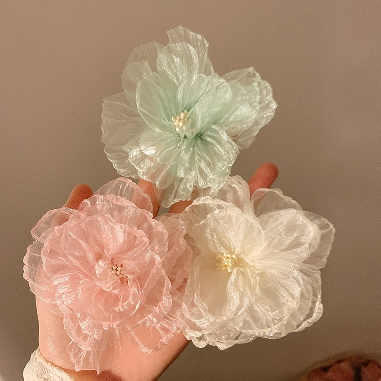 甜美花蕊边夹超仙网纱发夹花朵侧边度假头饰海边刘海新款发卡发饰