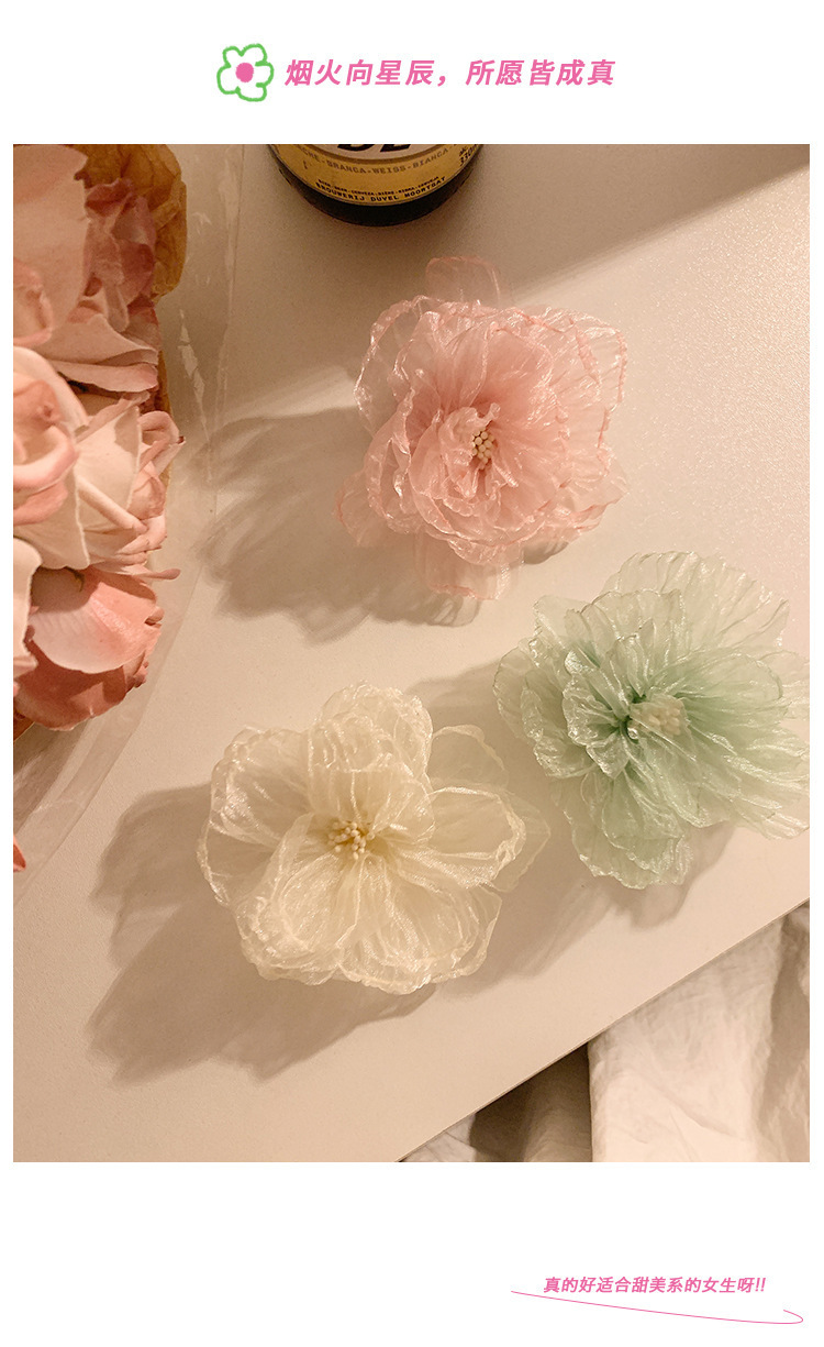 甜美花蕊边夹超仙网纱发夹花朵侧边度假头饰海边刘海新款发卡发饰 投诉