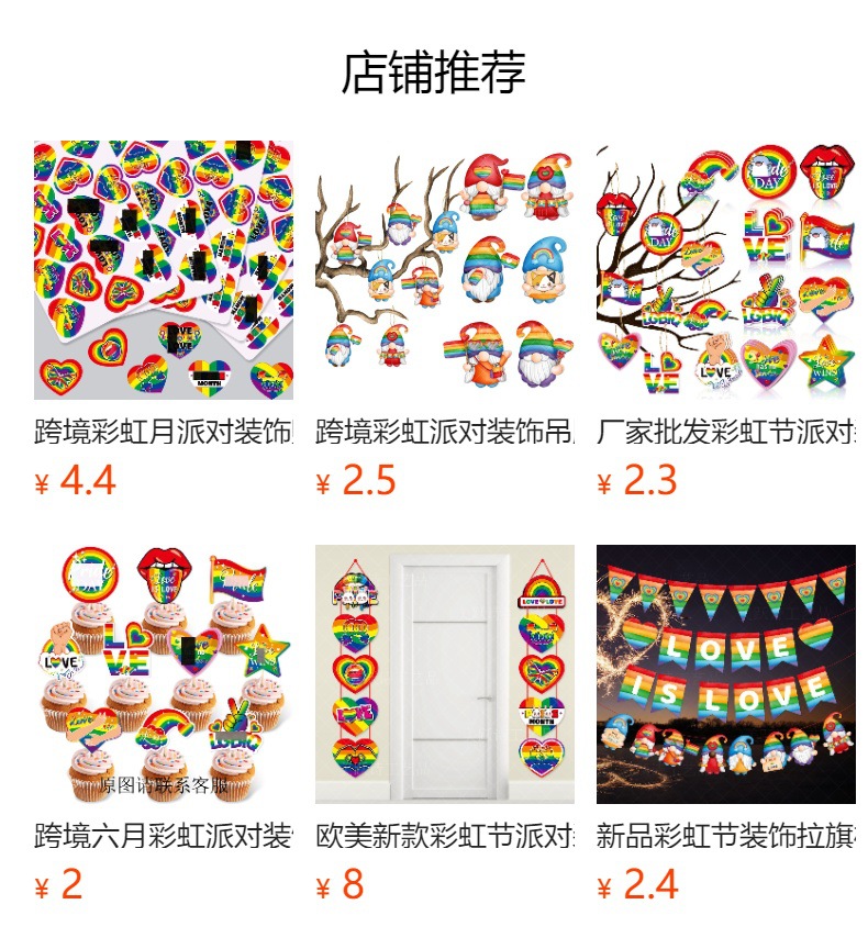 产品用途:彩虹节派对装饰用品,彩虹节日气氛装饰横幅拉旗,六月节派对装饰用品。