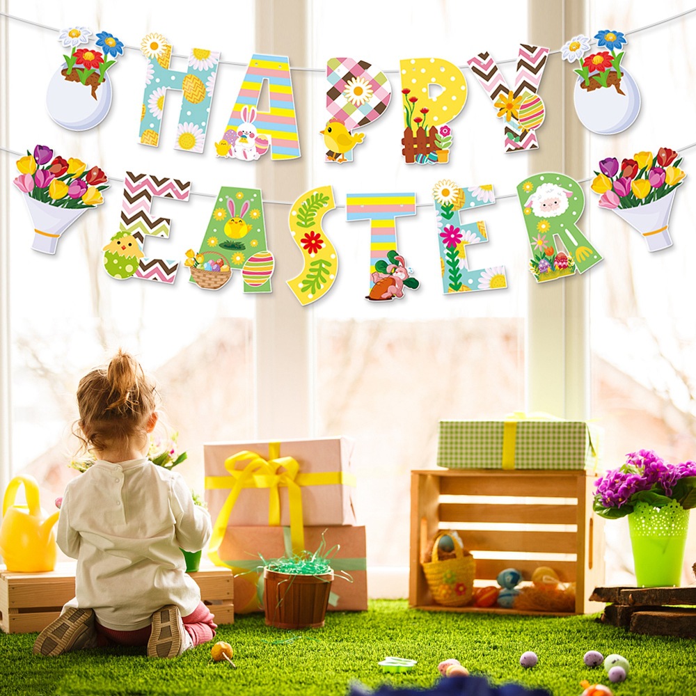 用途:生日派对拍照,复活节主题派对装饰用品拉旗。