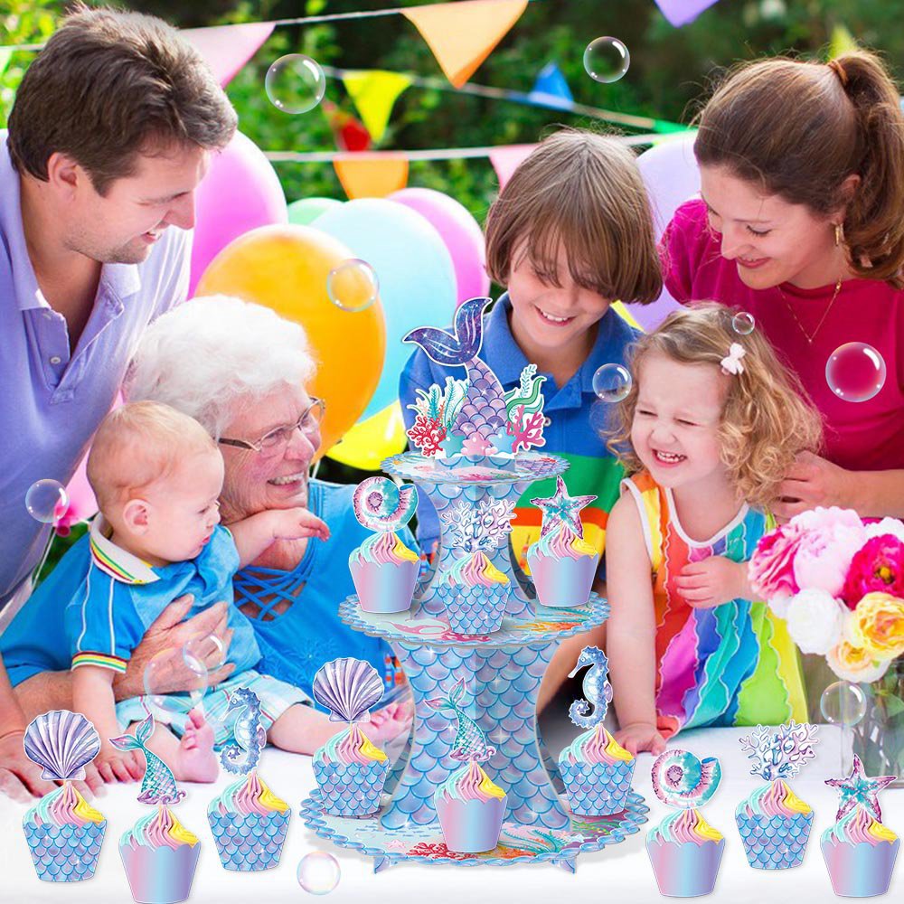 用途:跨境美人鱼主题生日派对装饰,生日派对装饰蛋糕架,生日派对场景布置装饰蛋糕托。