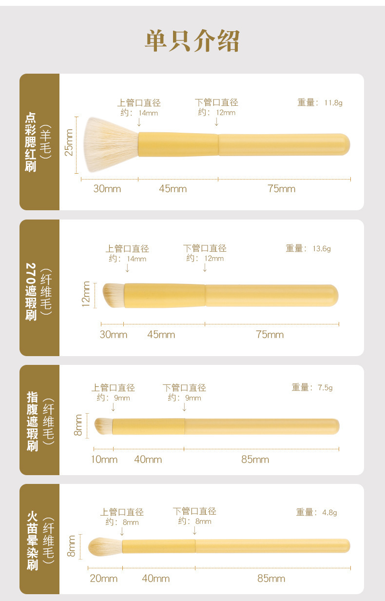 刷毛材质: 尼龙毛 刷柄材质: 木柄 套刷支数: 9支 产品类别: 化妆刷,化妆套刷,眼线刷,遮瑕刷,眼影刷 刷柄规格: 长杆 是否进口: 否 刷包类型: 袋装