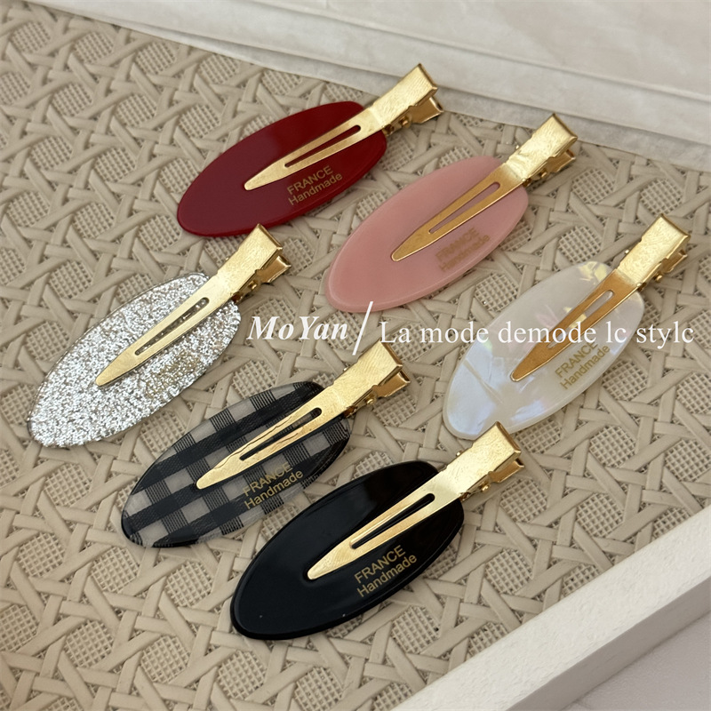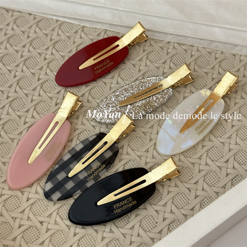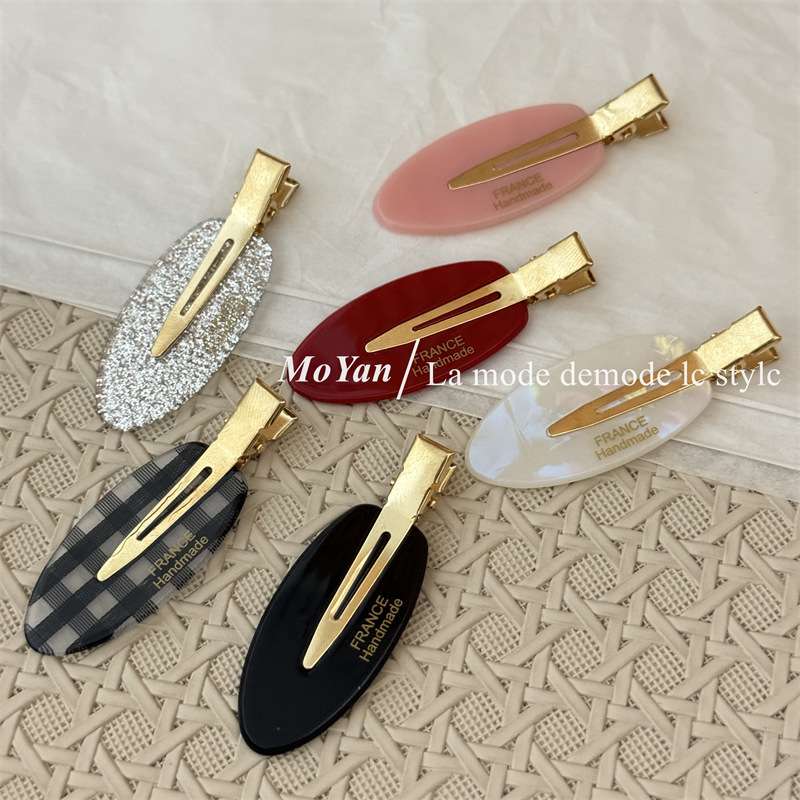 材质: 亚克力 品牌: 沫妍 发夹分类: 无痕发夹 流行元素: 椭圆 风格: 甜美风 处理工艺: 手工 货号: 1099J 样式: 女式 产地: 义乌 颜色: 格纹款,银闪款,人鱼色,粉色,黑色,红色 有可授权的自有品牌: 是 是否跨境出口专供货源: 是 上市年份/季节: 2025夏季 风格分类: 清新甜美 适用人群: 女式 流行元素分类: 几何 重量: 0.05 kg/个