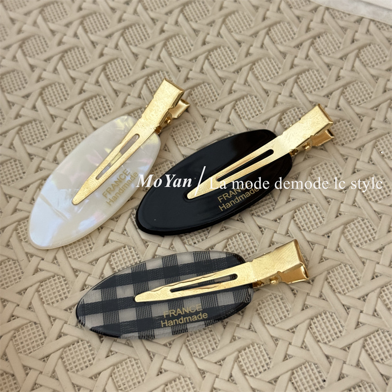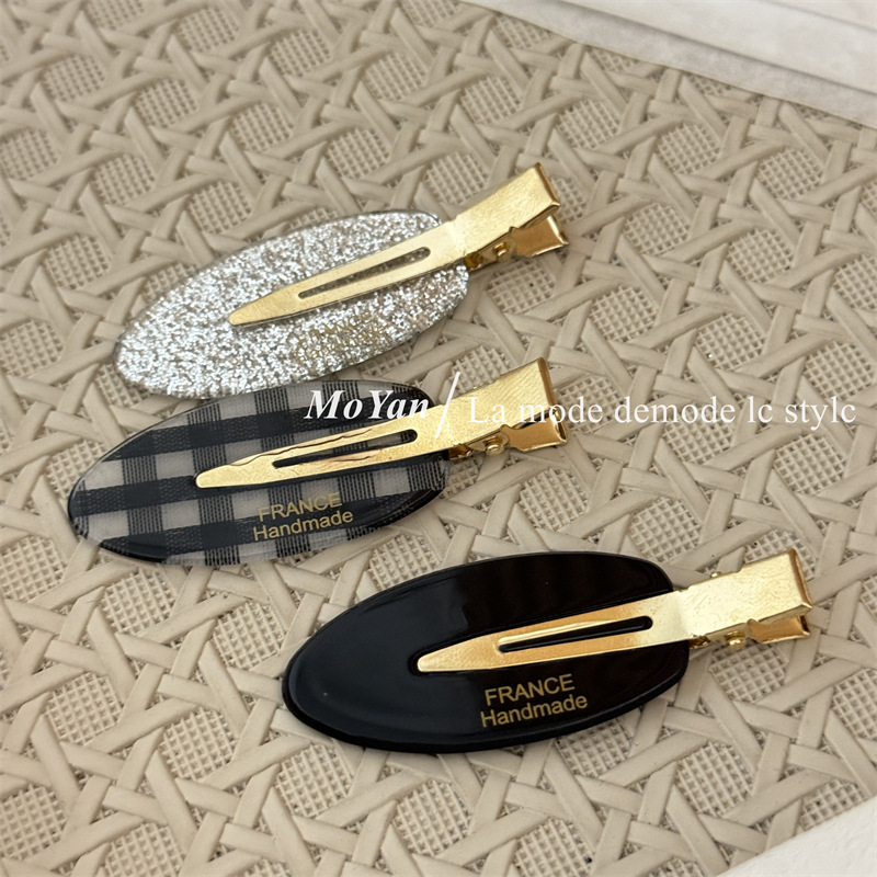韩版甜美气质无痕椭圆格纹字母标发夹女时尚碎发刘海夹边夹鸭嘴夹