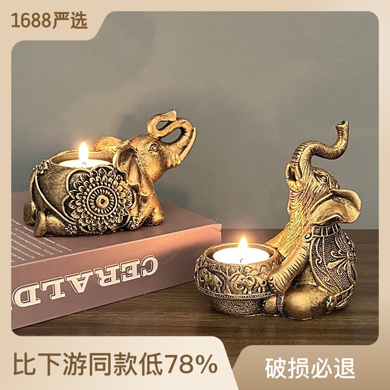 跨境新品动物大象树脂烛台餐桌书房装饰品摆件蜡烛台礼物道具圣象