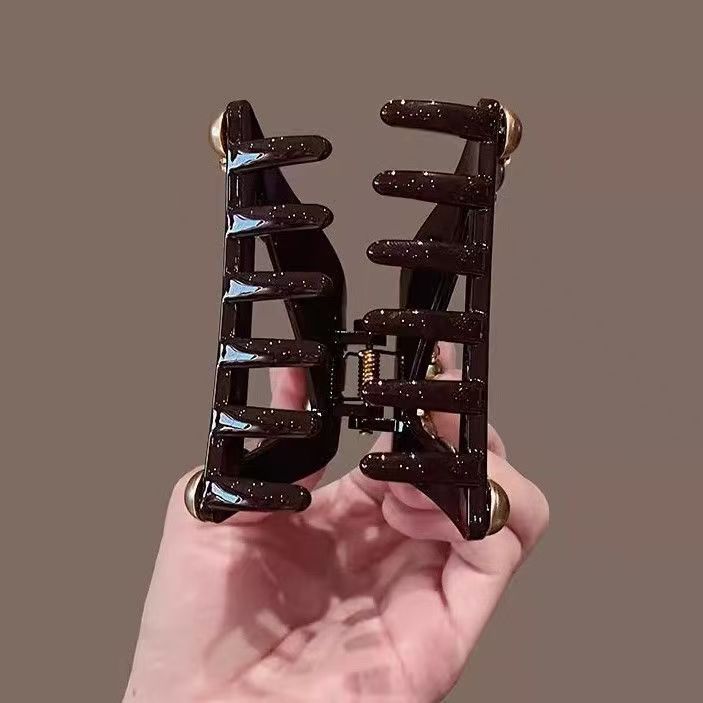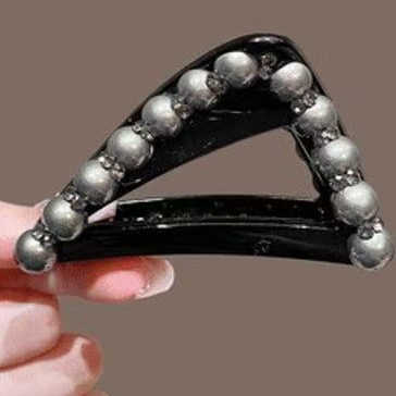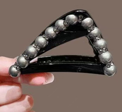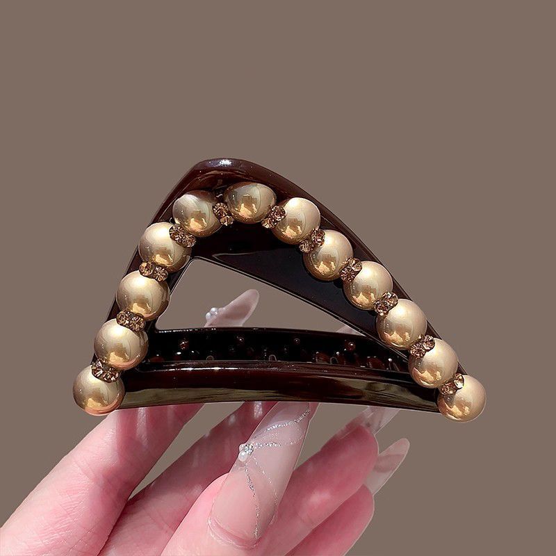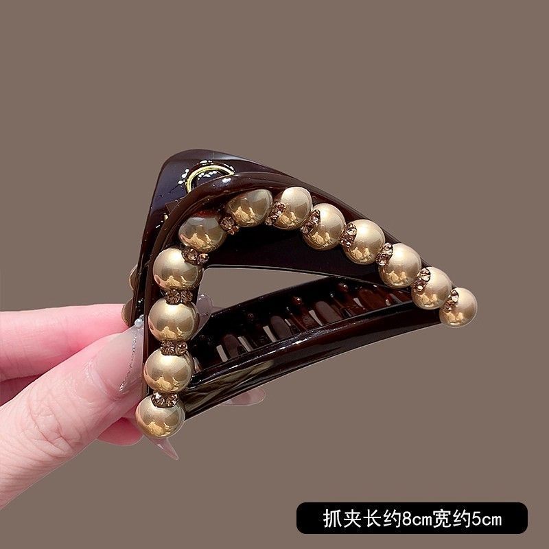 美拉德三角抓夹女香槟色珍珠发夹盘发鲨鱼夹高马尾固定夹头饰发根