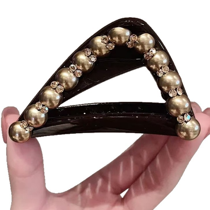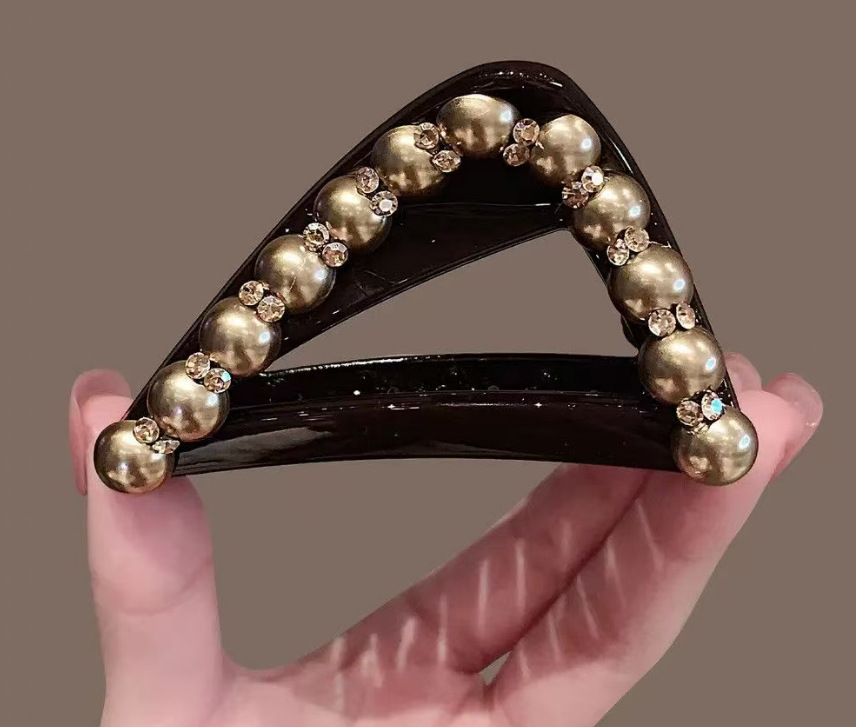 美拉德三角抓夹女香槟色珍珠发夹盘发鲨鱼夹高马尾固定夹头饰发根 投诉