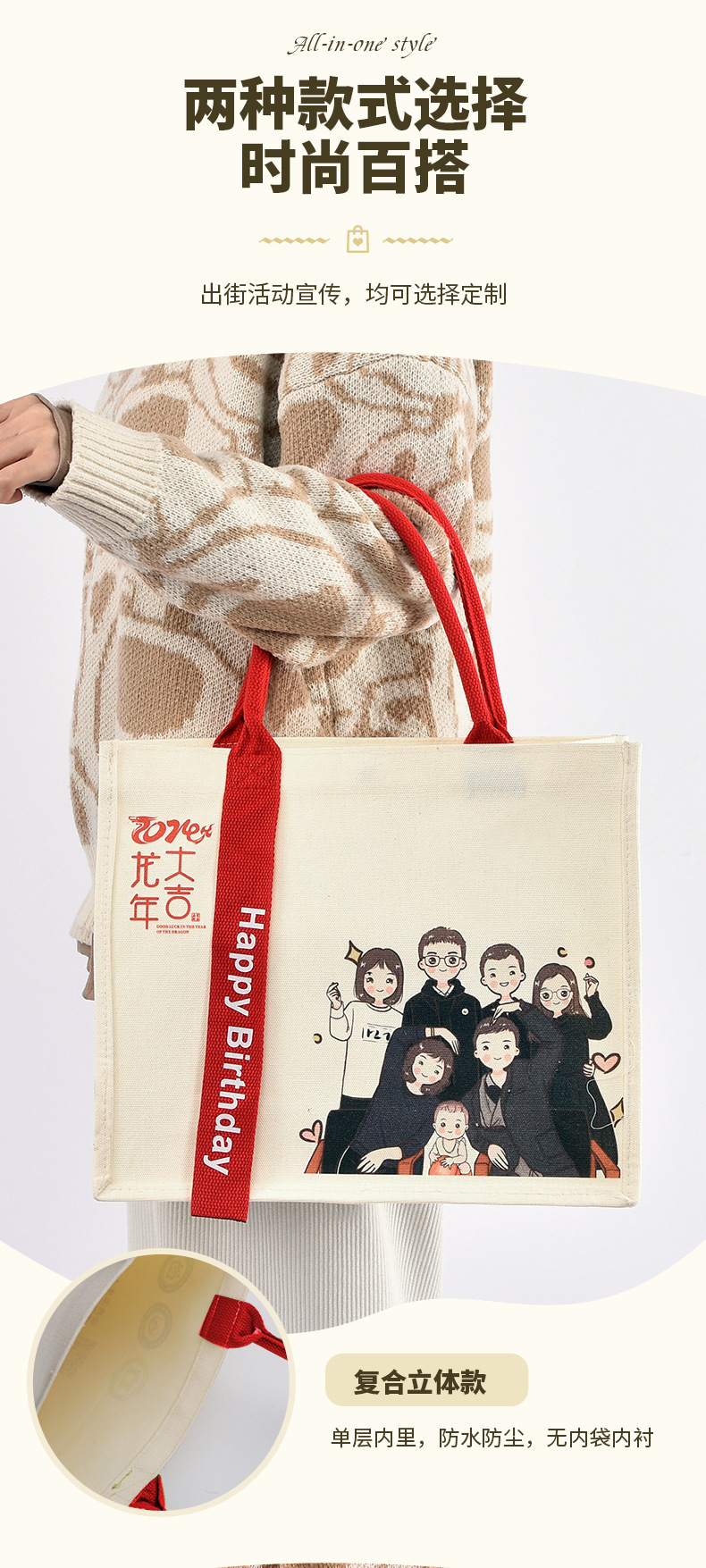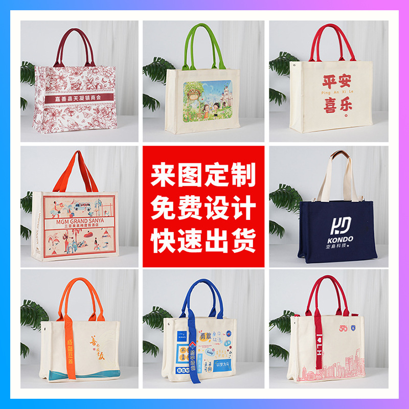 小批量帆布袋定制托特包加飘带数码彩印企业宣传包手提定制款 English | 投诉