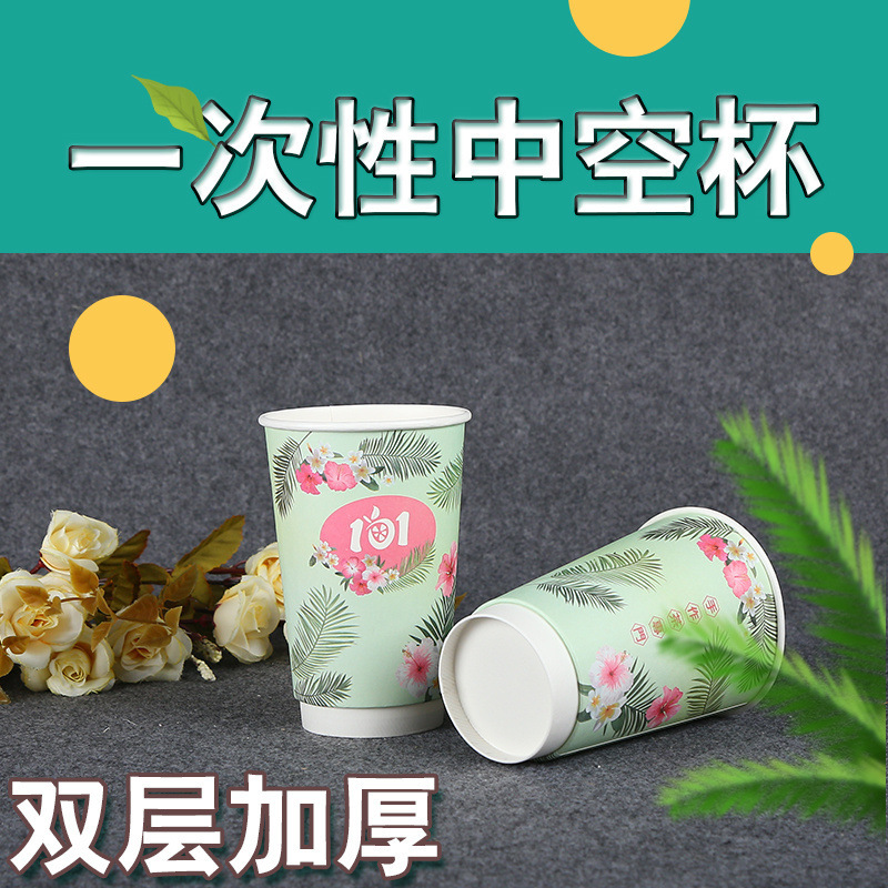 加厚一次性双层隔热热饮奶茶中空杯咖啡纸杯制定可印LOGO