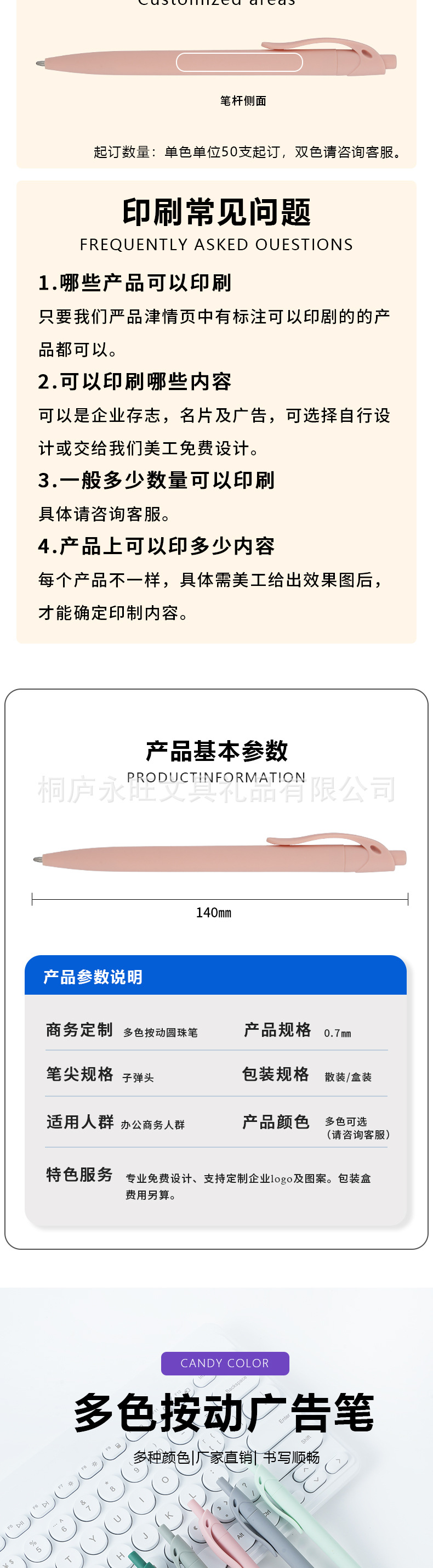 品牌: 永旺 型式: 按动 是否进口: 否 货号: 塑料笔 笔芯颜色: 黑色 笔头: 子弹型0.7 是否专利货源: 否 系列: 定制