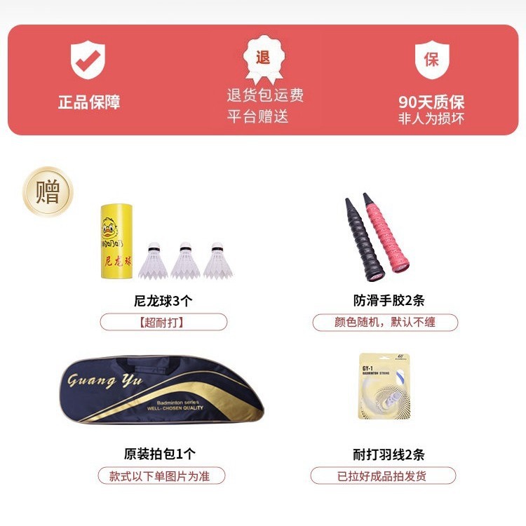 球拍外观设计时尚潮流,材质选用全碳素材质,弹性好,耐打度强。