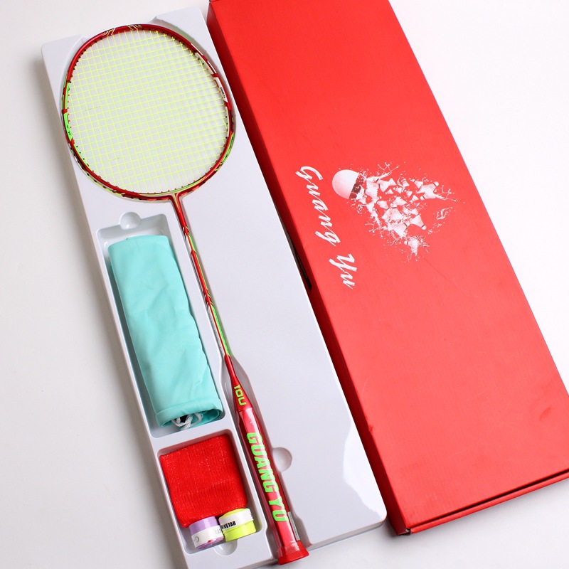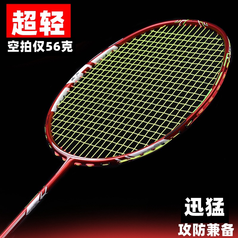 广羽【10U超轻系列】天生领袖型号,整体球拍采用中国红颜色为主打颜色,球拍材质选择全碳纤维二次加固成型工艺,磅数可达30磅,真材实料,肉眼就能看得一清二楚,球拍设计做了10U的重量,空拍的重量仅52-54克,球拍握在手里第一感觉就是“轻”,根本感觉不出手里拿着一把羽毛球拍。【推荐:攻防兼备型 能打哪里就打哪里 易上手 手感佳】