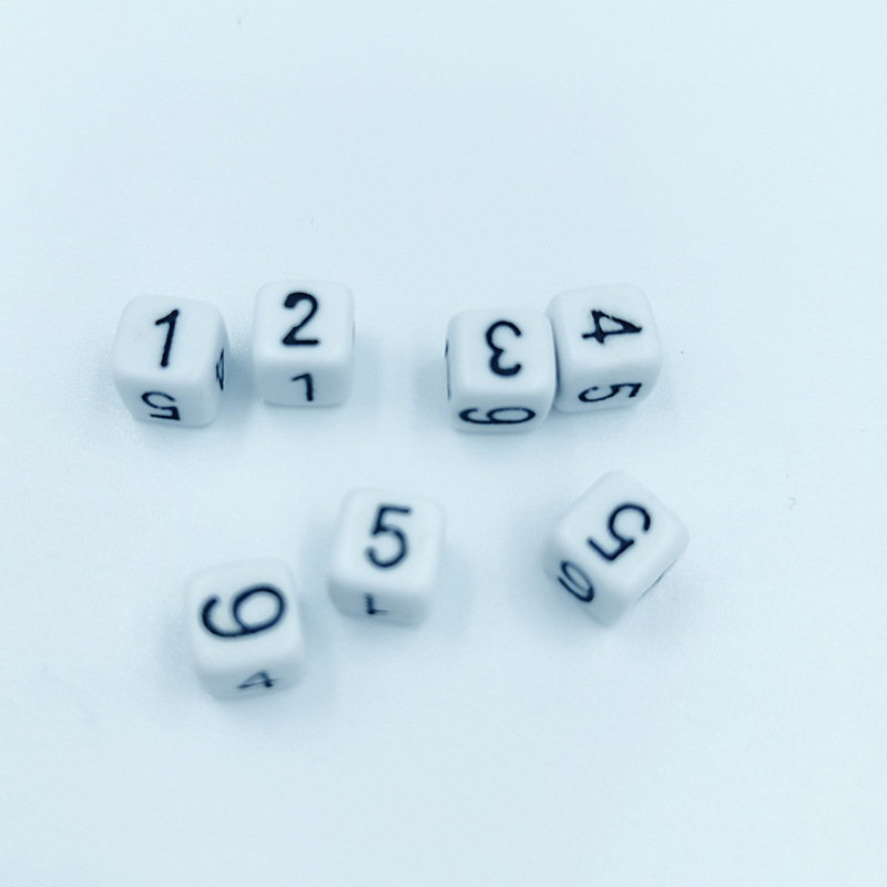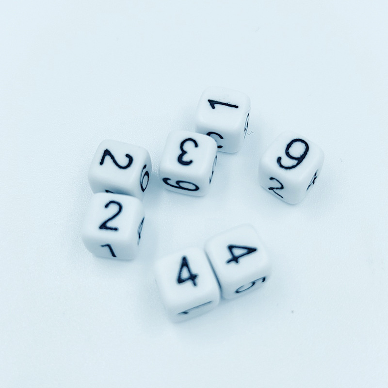 厂家供应8MM数字方角骰子白底黑字骰子酒吧 玩具配件塑料骰子批发 投诉