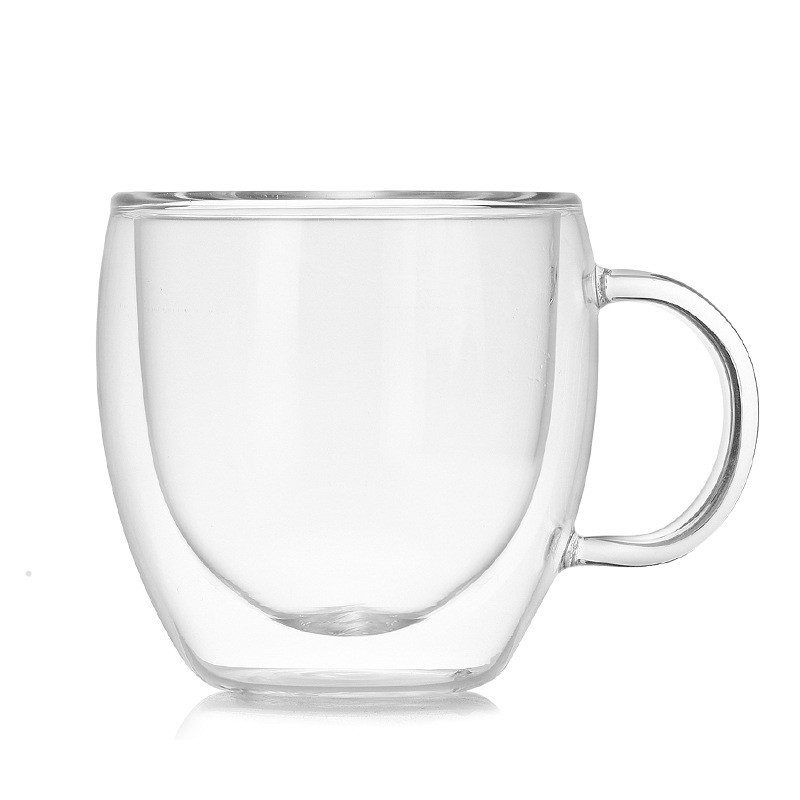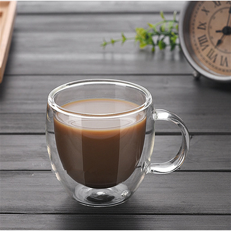 日式双层咖啡杯耐热玻璃带把手水杯办公室茶杯家用喝水杯玻璃杯