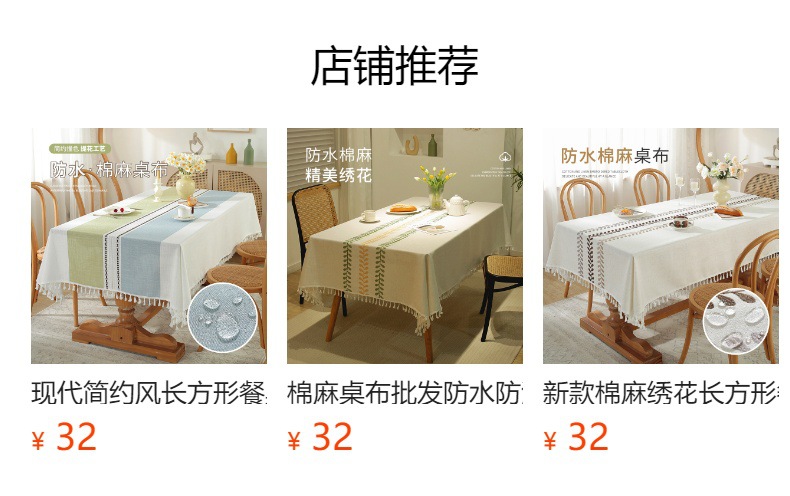 | 防水长方桌布140*220cm | ¥5844 | 10007块可售 |