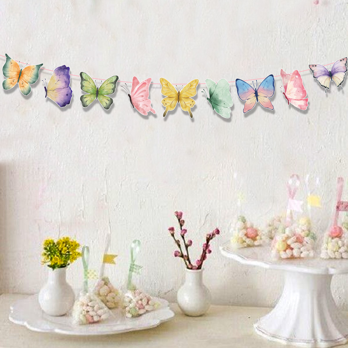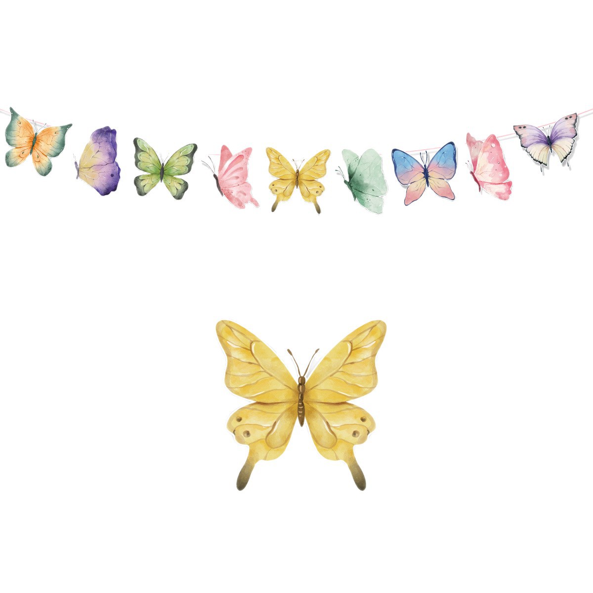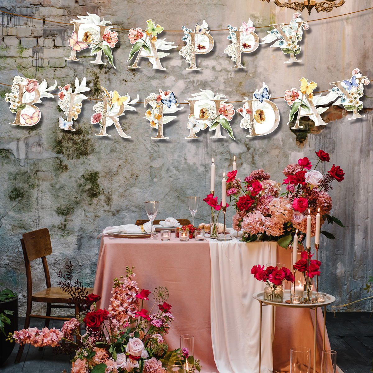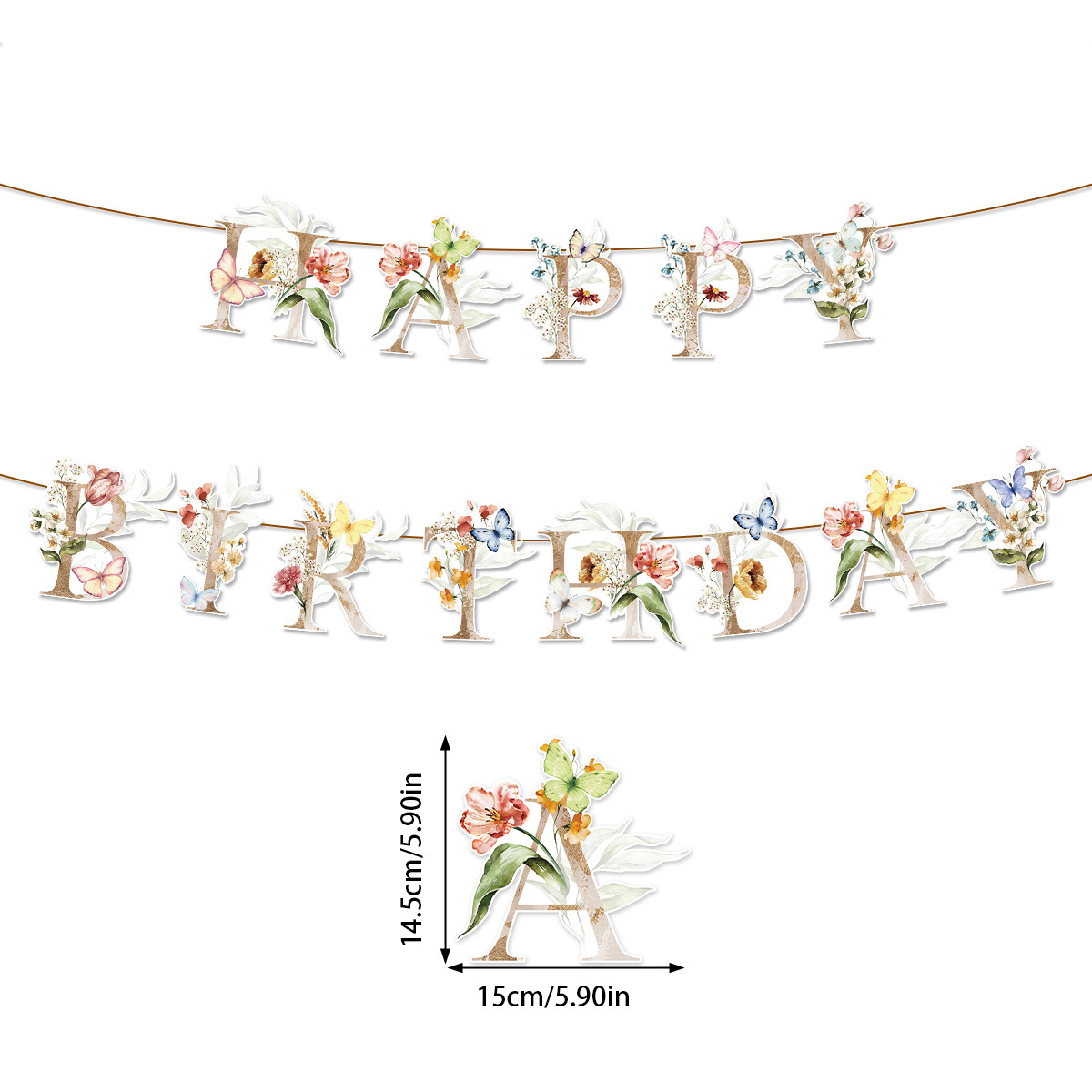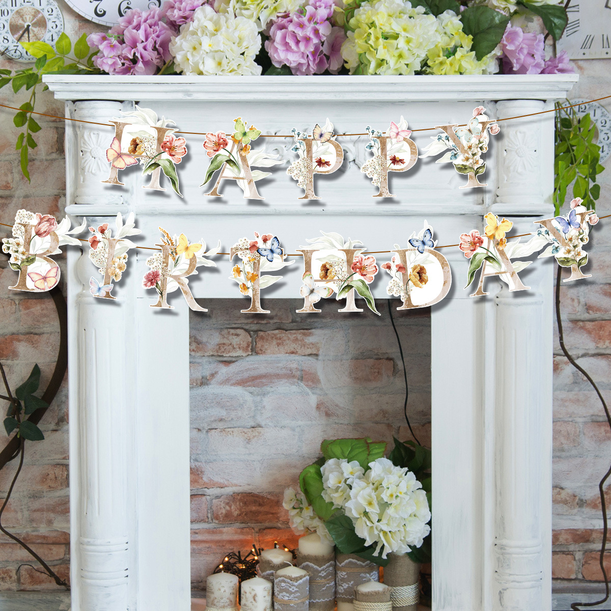 跨境新款亚马逊春季蝴蝶字母拉旗横幅生日派对装饰拉旗拉花批发