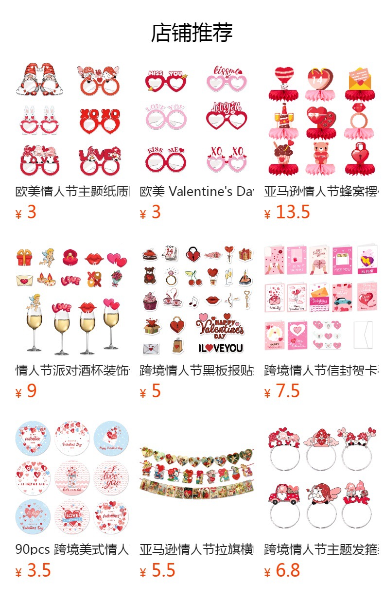 跨境情人节爱心纸质3D眼镜 欧美Valentine's Day派对搞怪装饰道具