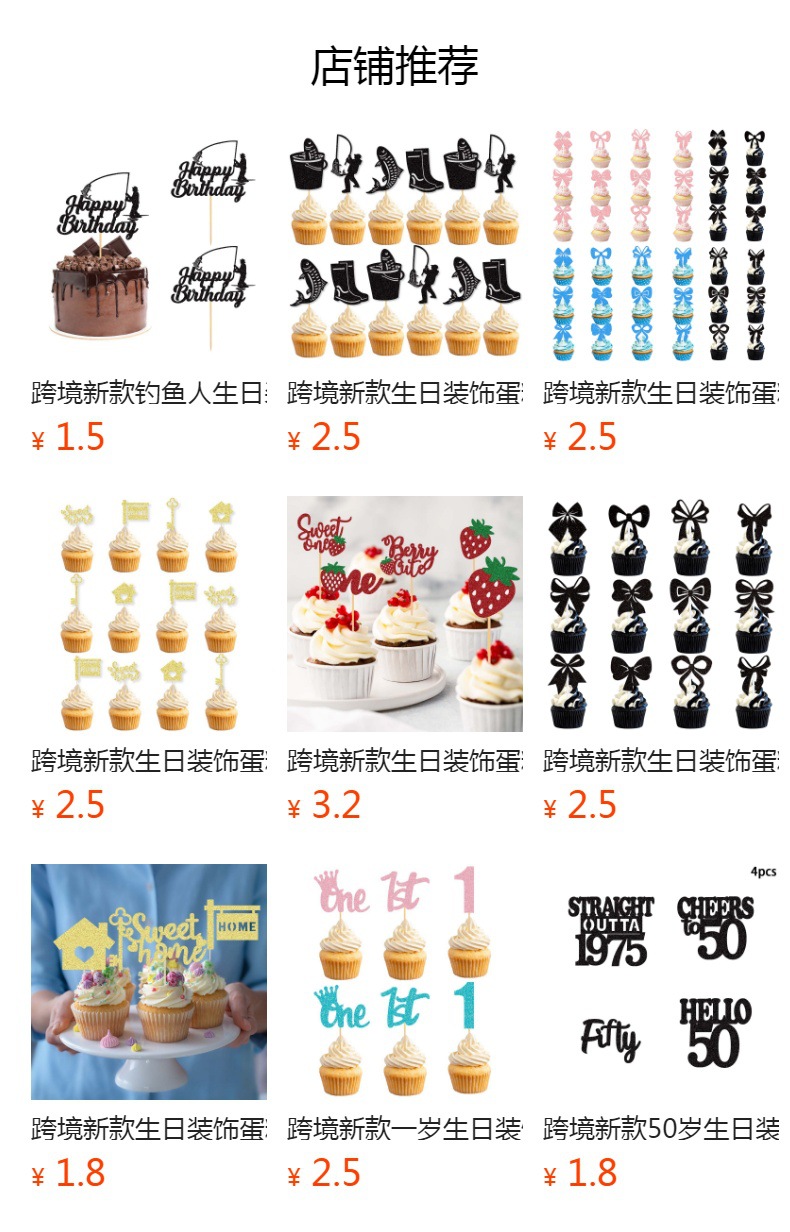产品:跨境新款生日蛋糕插旗聚会派对