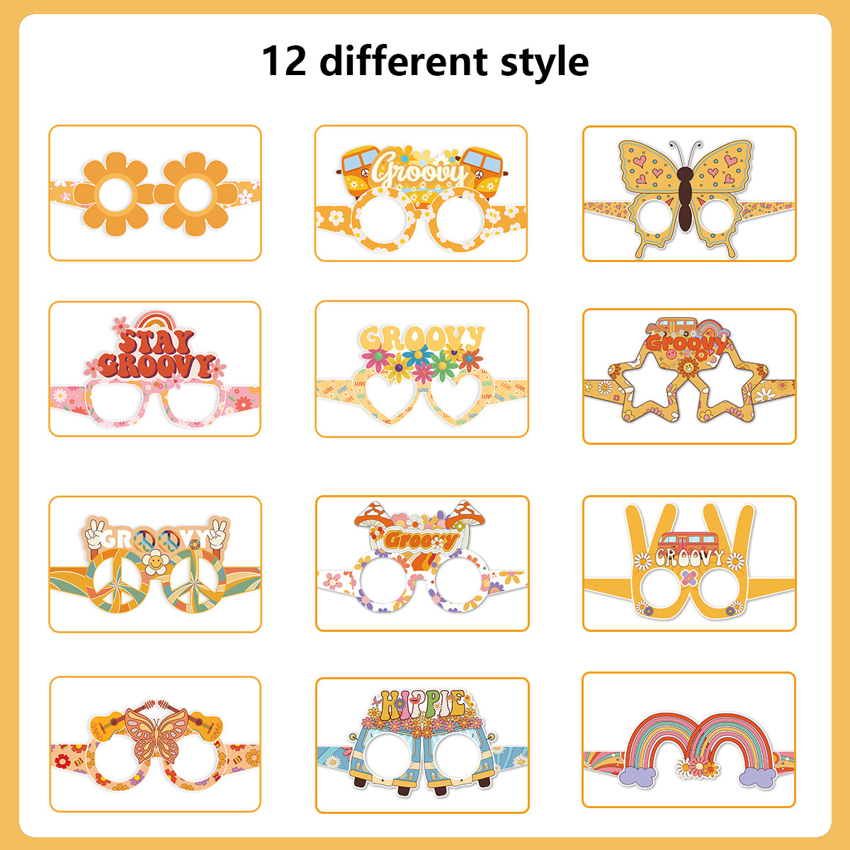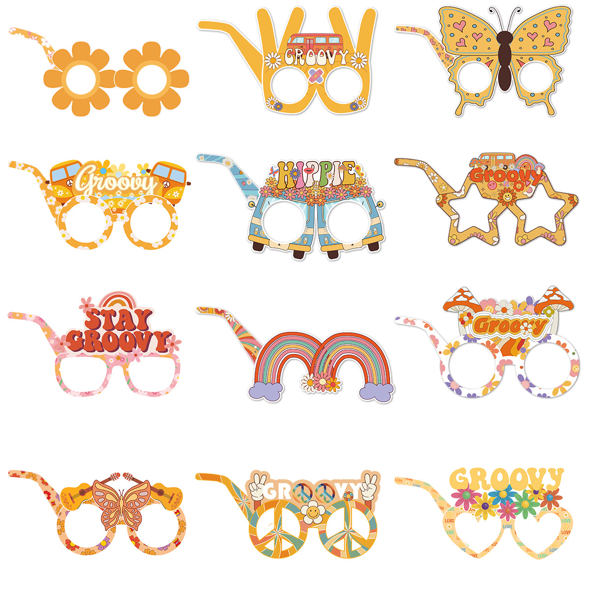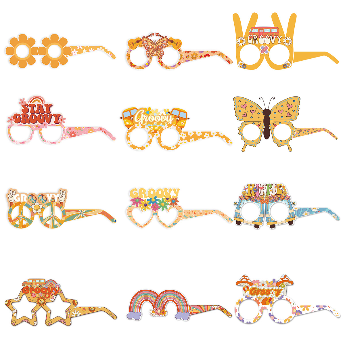 2023嬉皮士3D纸质眼镜Two Groovy儿童成人派对装饰拍照道具批发(折叠后即可佩戴)