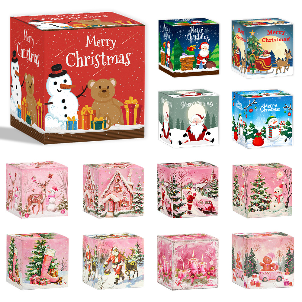 系列:2024跨境亚马逊新款圣诞节装饰道具雪人立体卡扣纸盒糖果零食包装盒派对用品