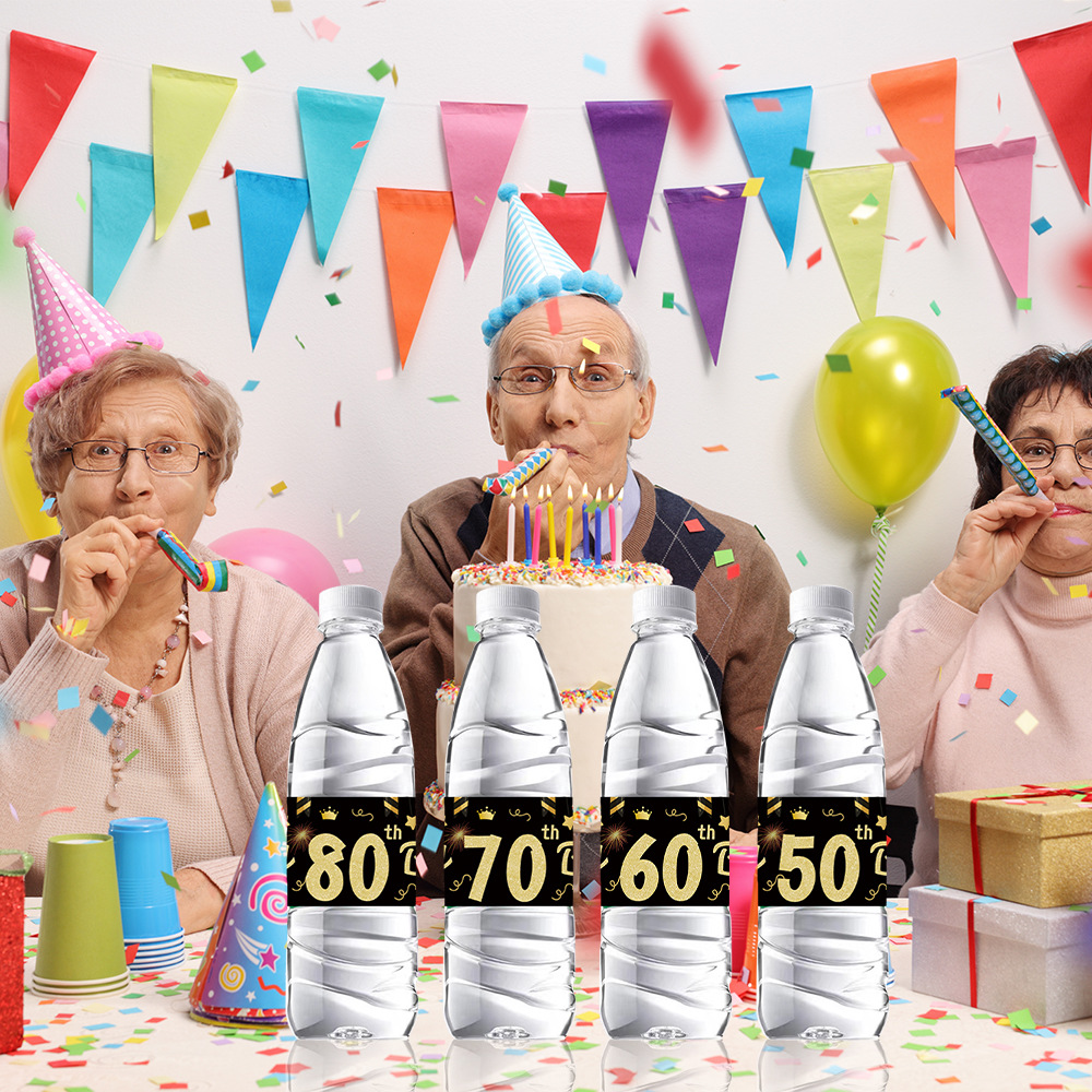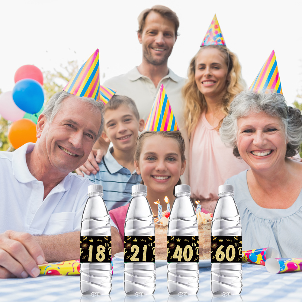 系列:2024跨境新款新品周岁生日装饰场景道具红酒会贴纸防矿水瓶不干胶派对用品