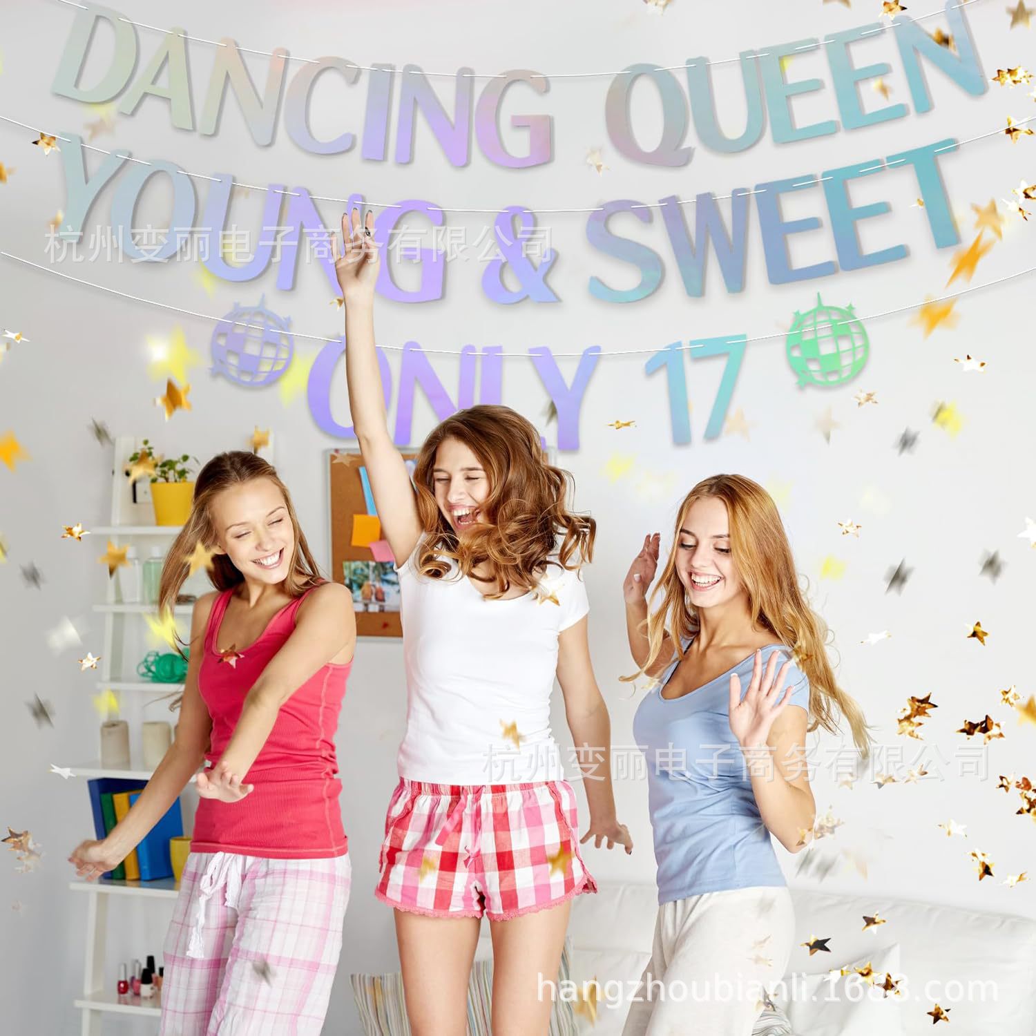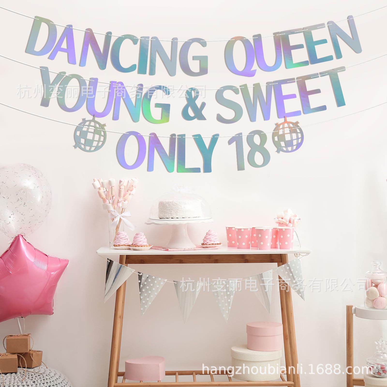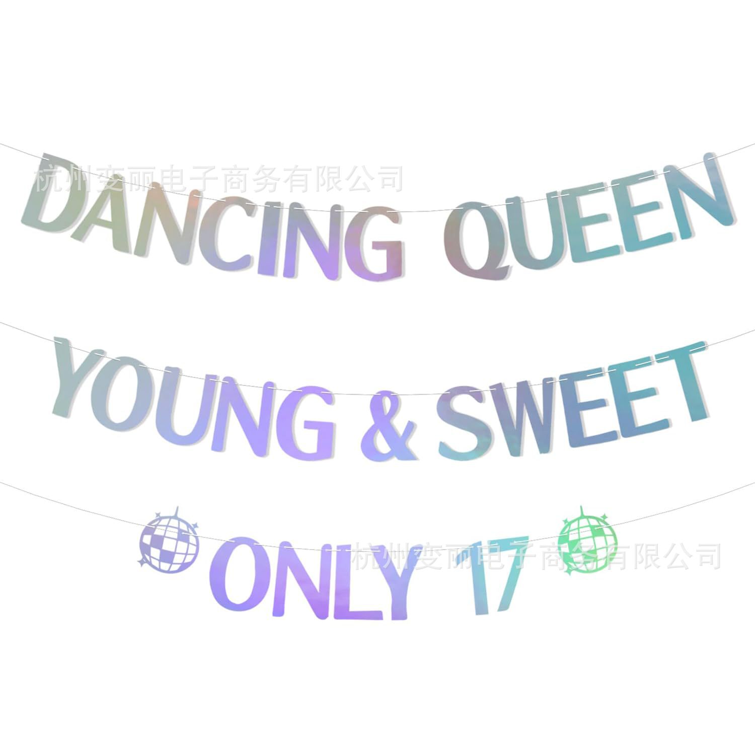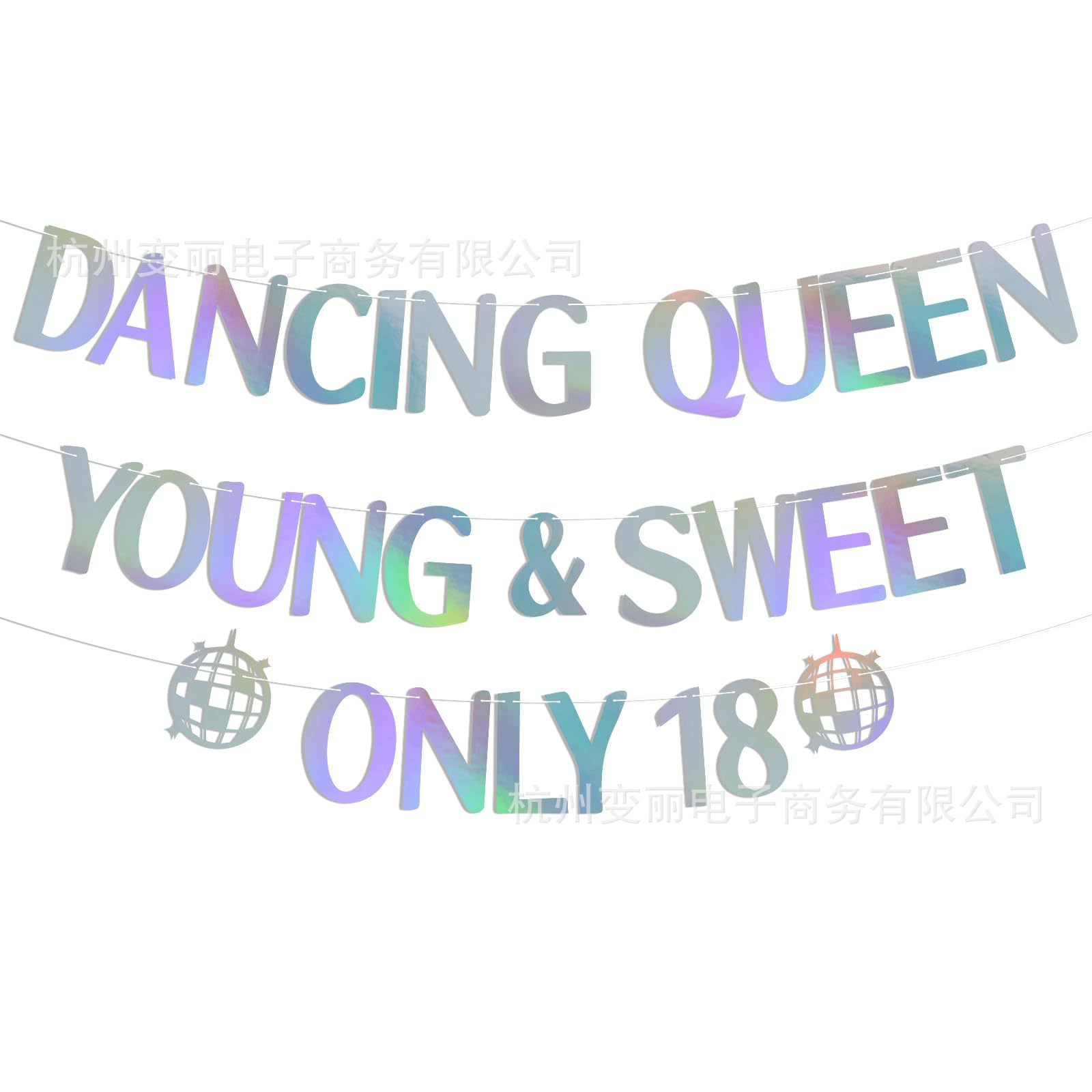 迪斯科主题17岁生日拉旗 Dancing queen新娘订婚派对迪斯科球拉花