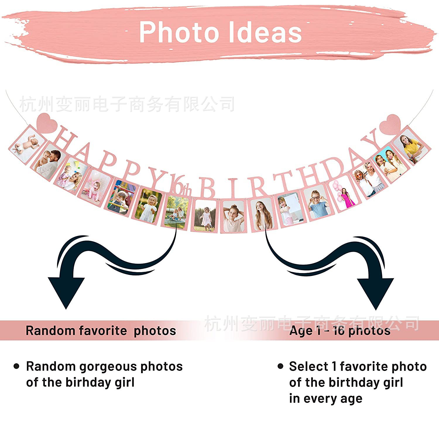 Happy Birthday 生日快乐拉旗照片墙 主题派对照片展示气氛布置