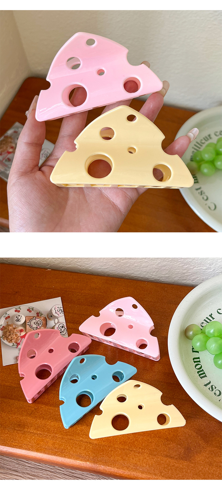 材质: 塑料 品牌: 昕越 发夹分类: 抓夹 流行元素: 奶茶 风格: 可爱风 处理工艺: 纯手工制作 货号: X11680 样式: 奶酪 产地: 义乌 有可授权的自有品牌: 是 是否跨境出口专供货源: 是 上市年份/季节: 2024年夏季 风格分类: 清新甜美 适用人群: 女式 流行元素分类: 水果/食品 重量: 0.05 kg/件