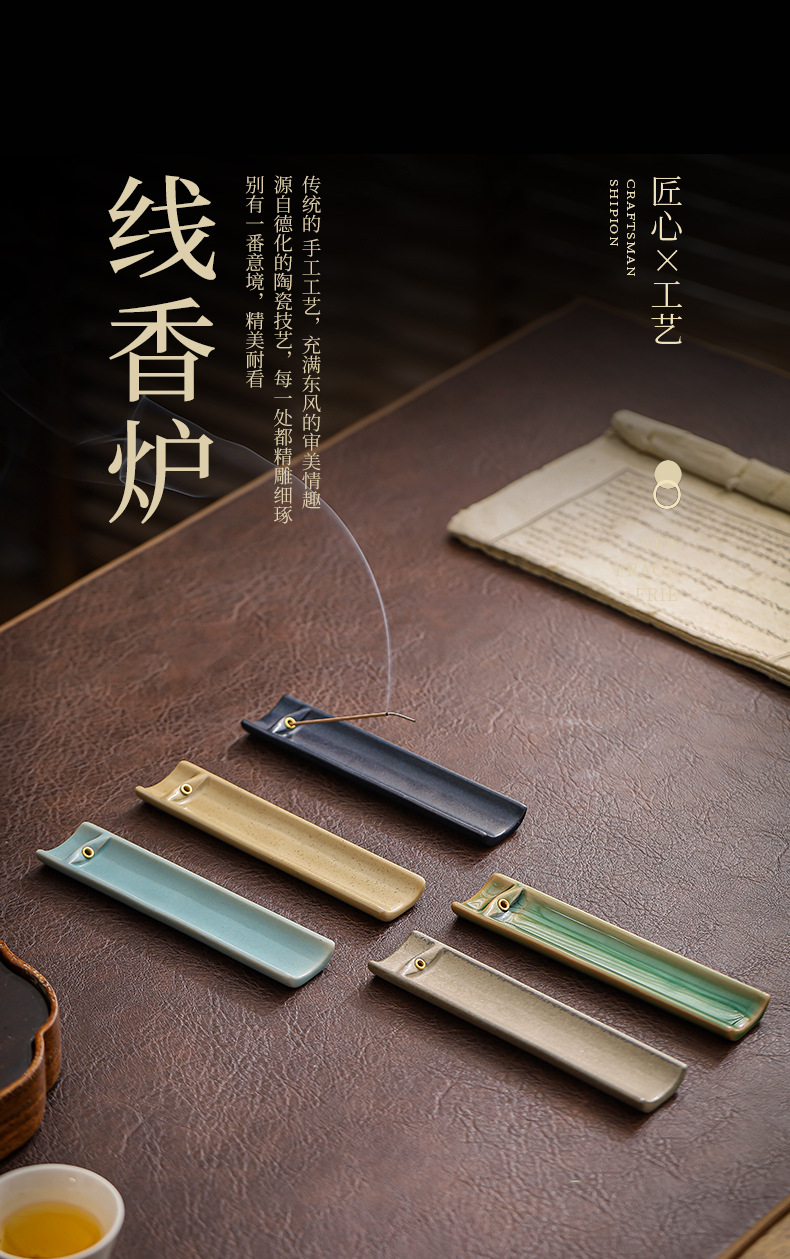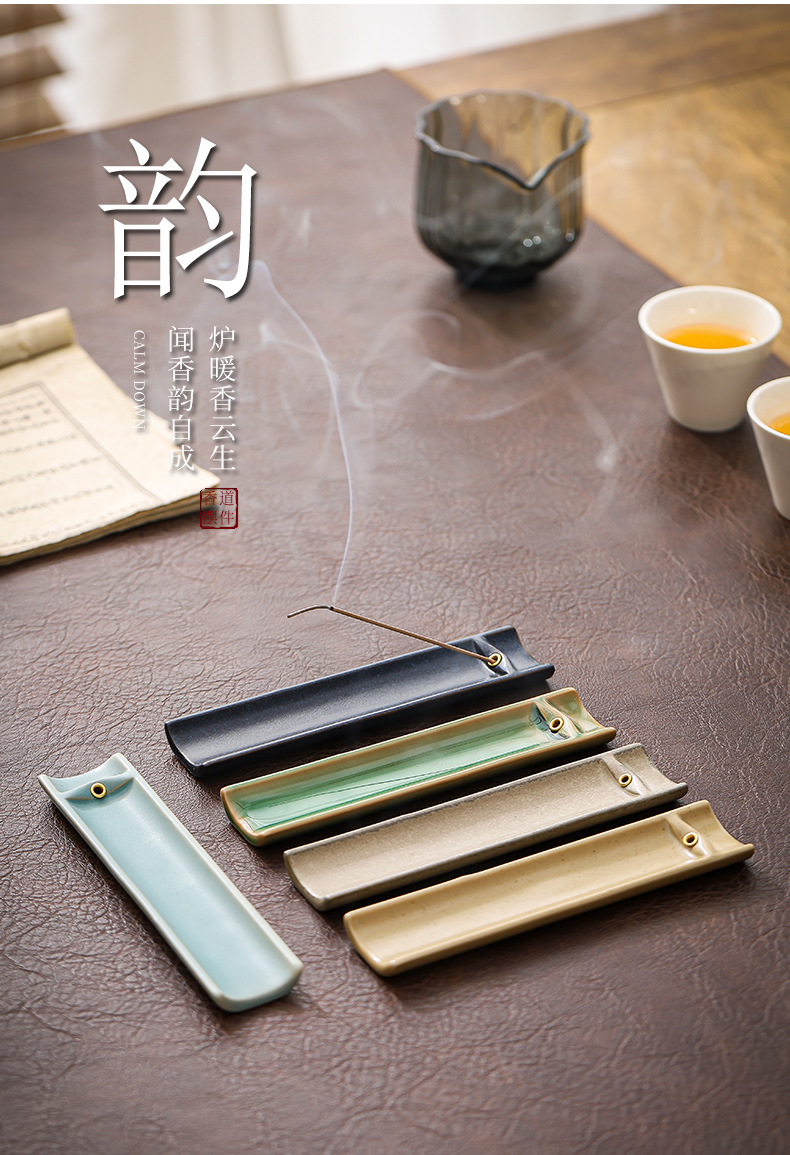 禅意陶瓷竹片线香插日式香座香盘插香器 茶道创意卧香炉 家用香托 投诉