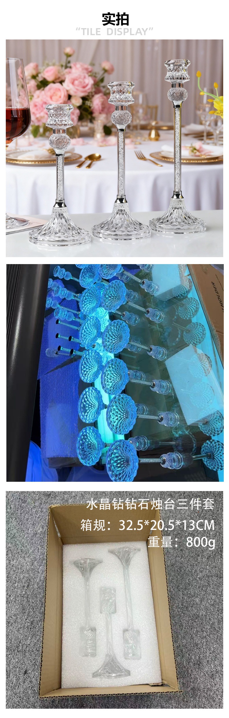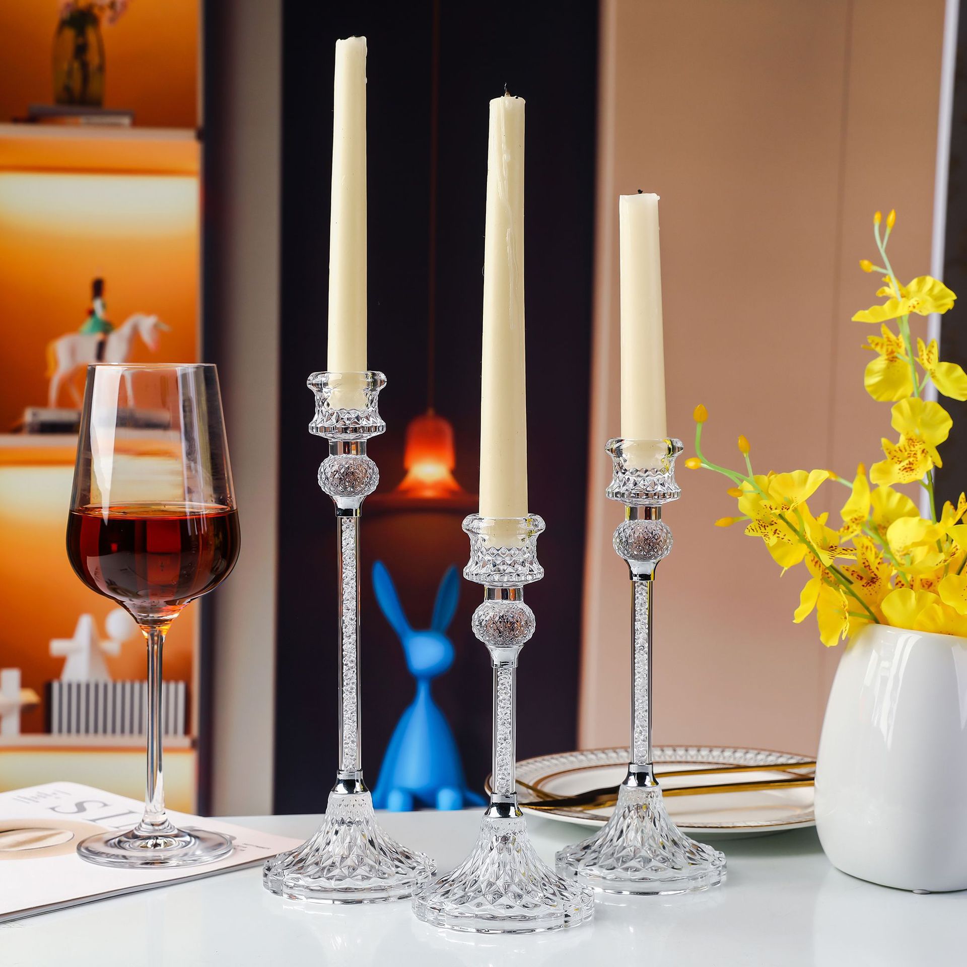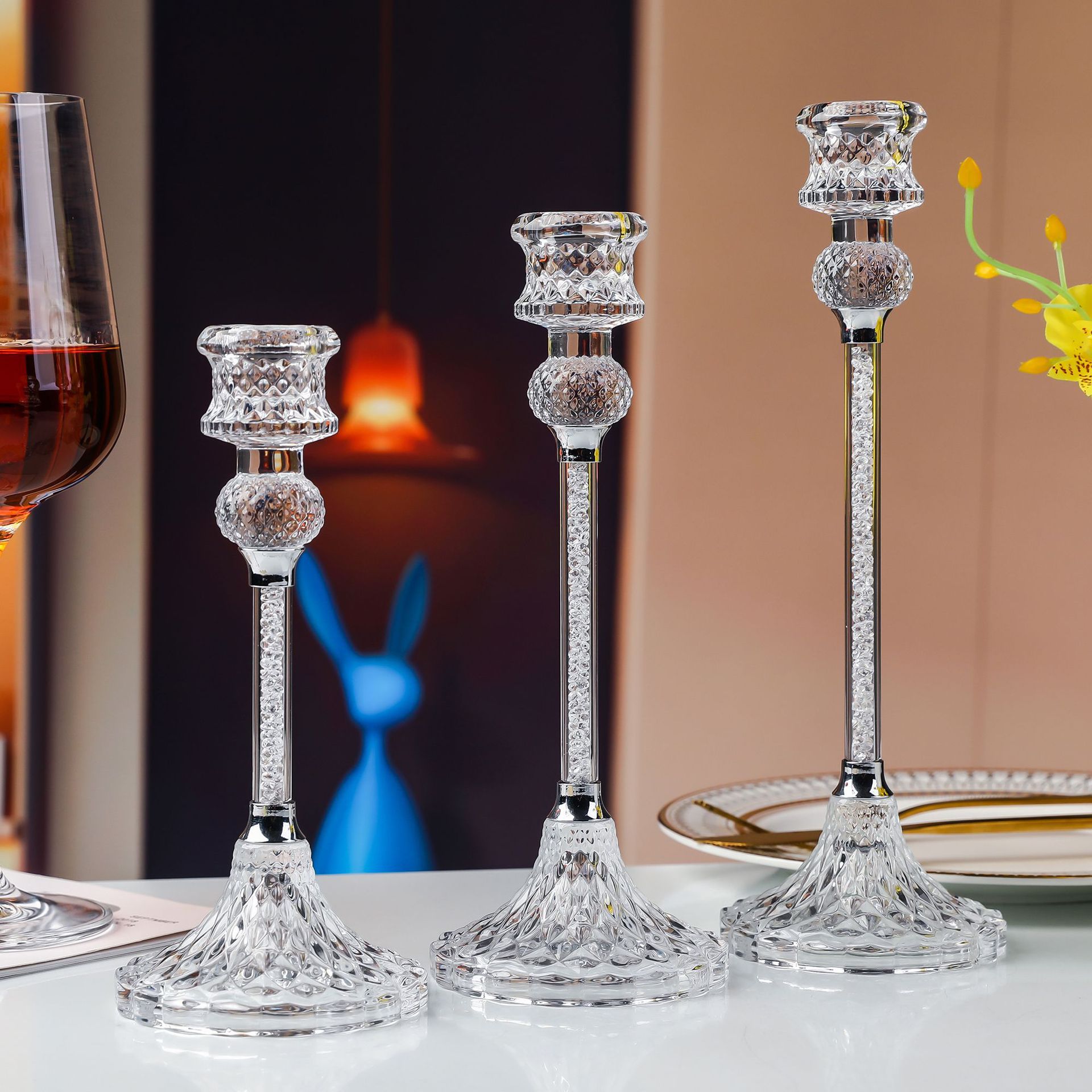 钻石玻璃套装烛台摆件