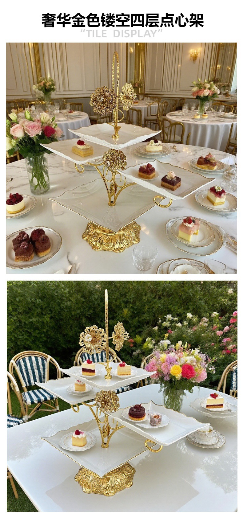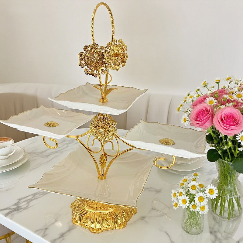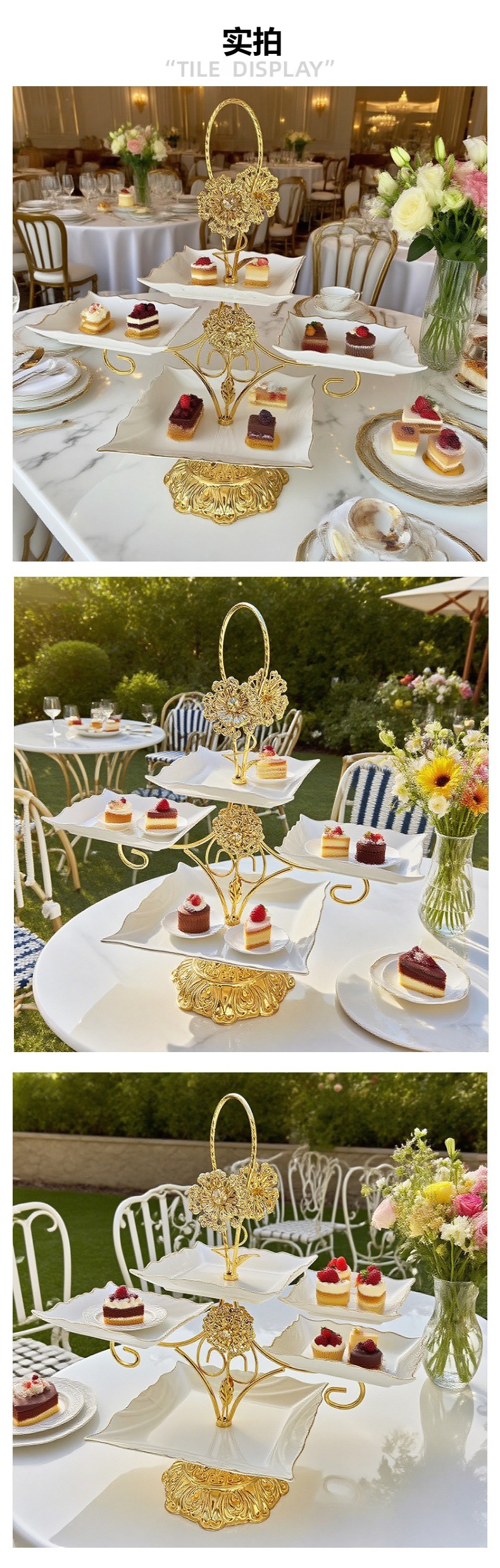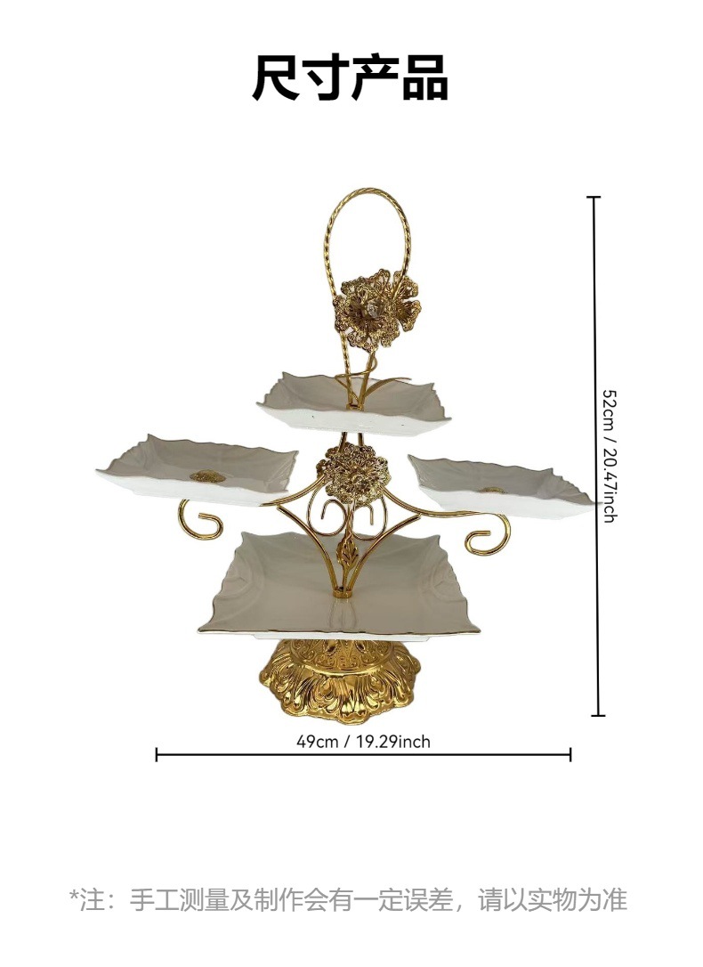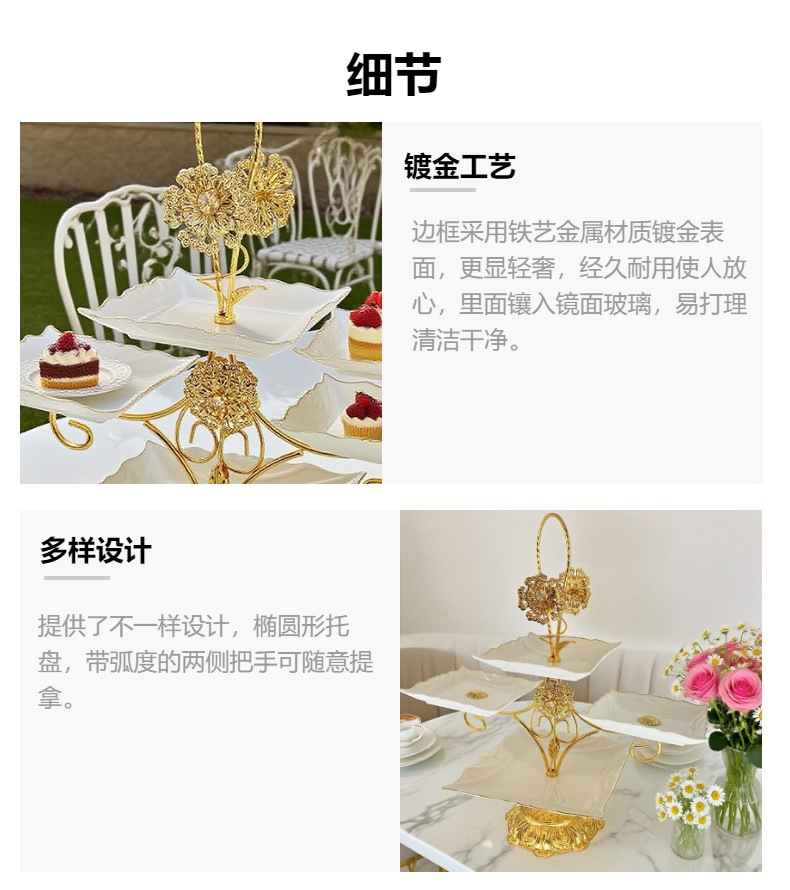 跨境北美创意多层甜品架金色雕花镂空设计酒店室外下午茶精致摆盘 投诉