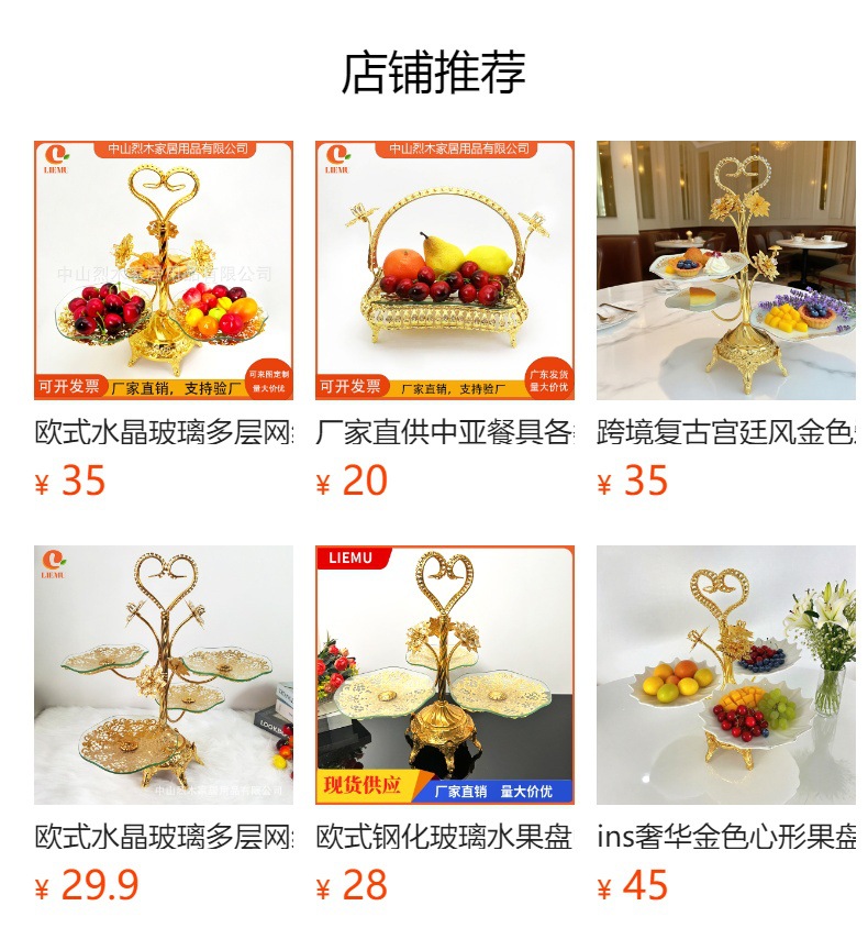 材质: 玻璃 品牌: 烈木家居 产品质量等级: 合格品 产品类别: 果盘 风格: 中东中亚阿拉伯风格 是否进口: 否 颜色: 金色 产地: 其他 产品上市时间: 2019年 是否有专利: 无 货号: 方形果盘 主要下游平台: wish 主要销售地区: 中东 有可授权的自有品牌: 否 是否跨境出口专供货源: 是 版权: 无 铁艺果盘: 铁艺果篮 中亚餐具果盘: 水果盘 果盘: 果篮 重量: 0.001 kg/个