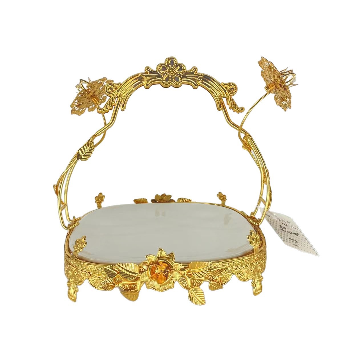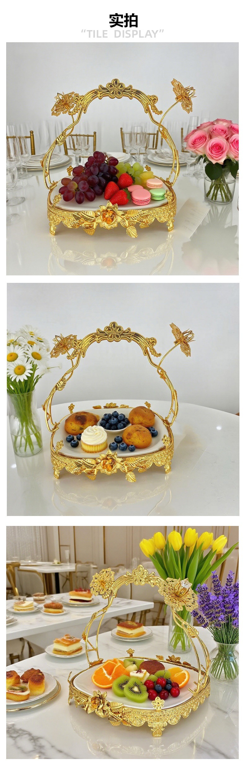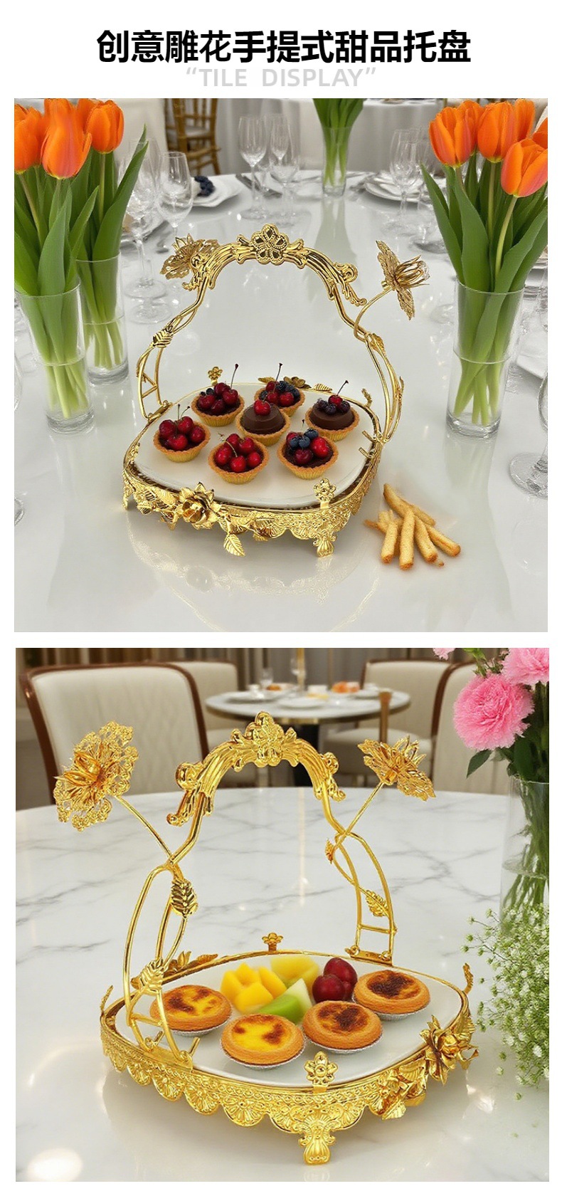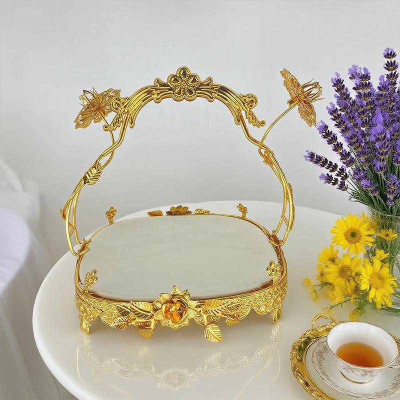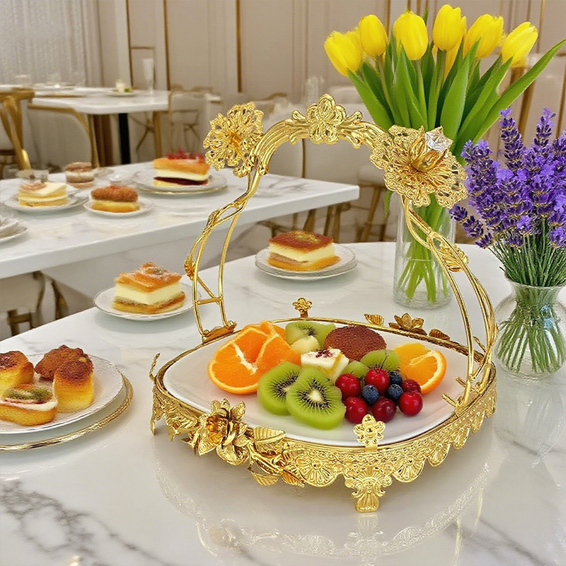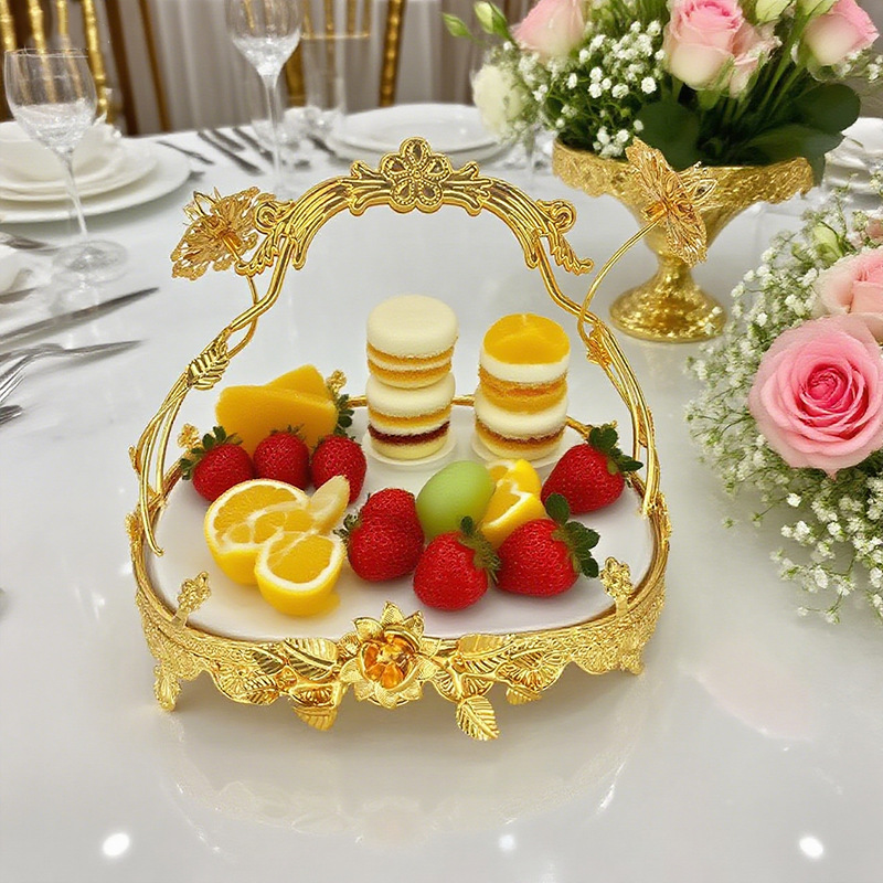 宫廷风金色雕花手提托盘餐厅宴会精致之选下午茶水果甜品摆盘装饰